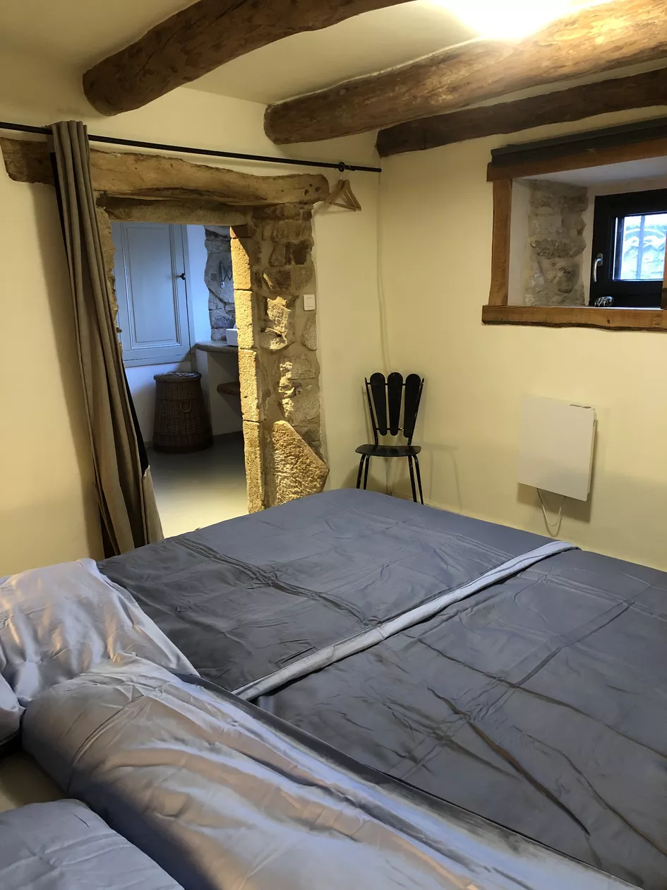 slaapkamer met een bed van 160x220 en een kast, een toilet en een badkamer met twee