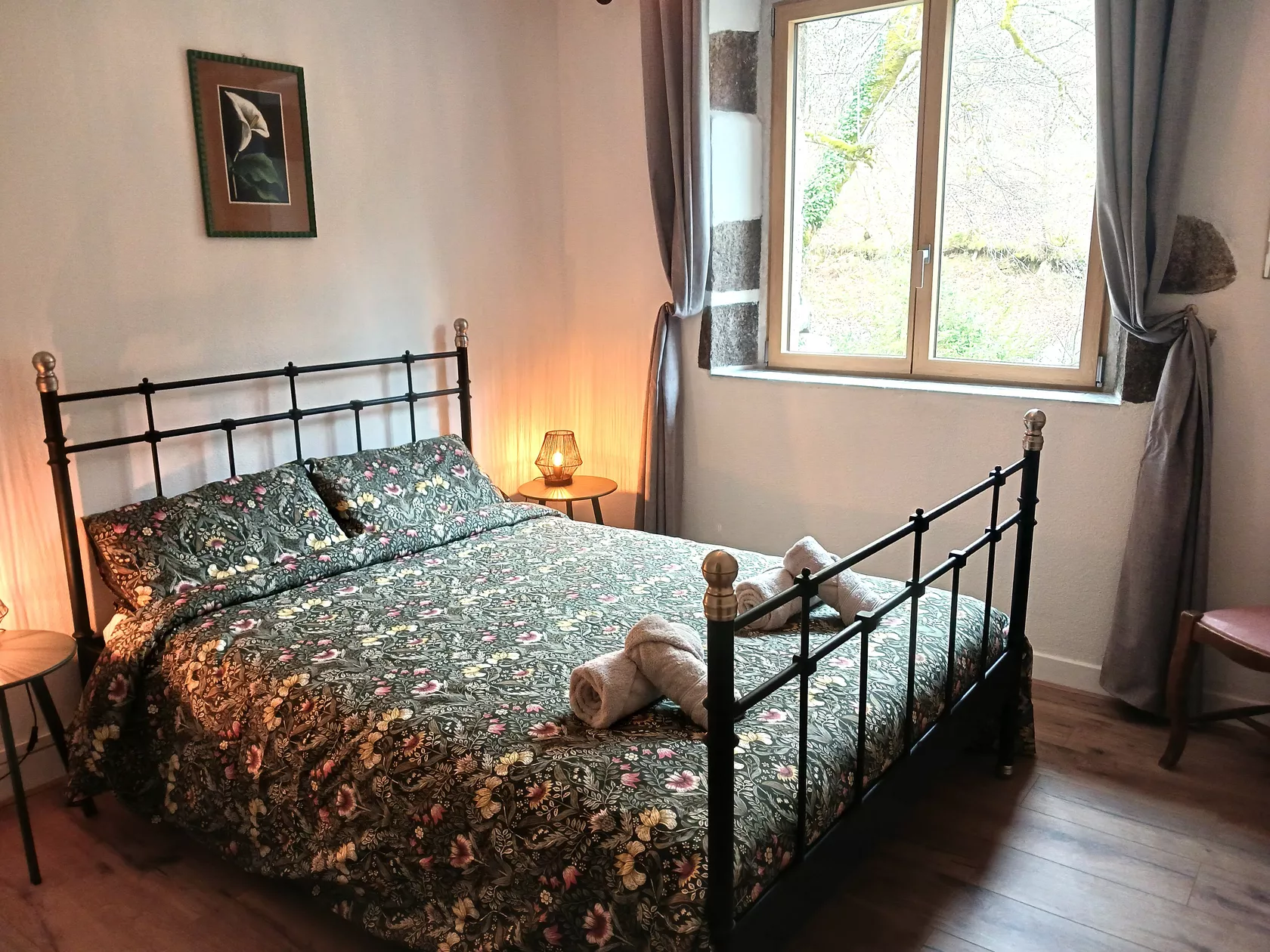 Serviesgoed, bestek en glazen zijn aanwezig. Boven zijn 3 comfortabele slaapkamers (2 kamers met 2-persoonsbed, 1 kamer met 2x 1-persoonsbed). Twee slaapkamers kijken uit over het mooie riviertje aan de voorzijde. De andere slaapkamer kijkt uit over het bos aan de achterzijde, waar er zomaar een vos of een hertje voorbij het raam kan dartelen.