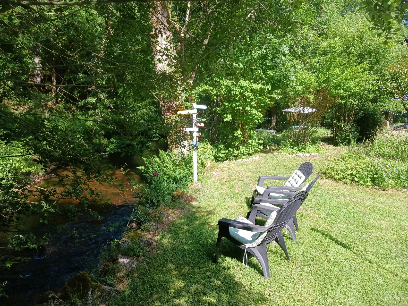 Het ligt midden in de bosrijke vallei van Gioux aan de oevers van de rivier La Gioune. Een betoverende sprookjesachtige omgeving, perfect voor een idyllische vakantie in de Creuse, in het hart van de prachtige regio Limousin in Frankrijk. De mooie tuinen, het bosrijke terrein, het zwembad (juli-aug) en de rivier zorgen voor rust en ontspanning. Er is geen mobiel bereik bij de molen, maar uiteraard beschikken de huisjes wel over goede WIFI.