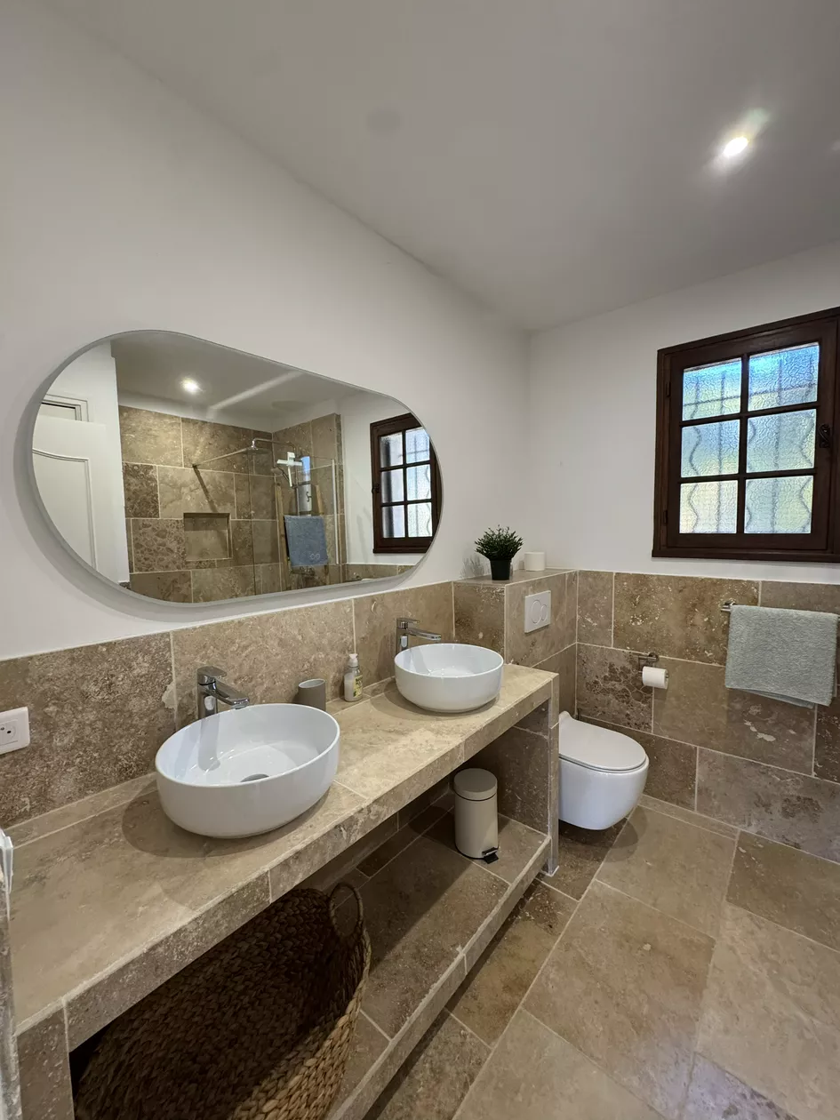 De buitenruimte is toegankelijk vanuit de zit/eetkamer en bestaat uit een overdekt eetterras en comfortabele zithoek met BBQ en uitzicht over het zwembad en de tuin. Er zijn veel gebieden om te verkennen in de enorme tuin met een speciale speelruimte met trampoline, voetbalnet en schommel. en jeu de boule baan. De vele volwassen mediterrane planten en struiken krijgen automatisch water en zorgen voor een heerlijke sfeer en privacy.