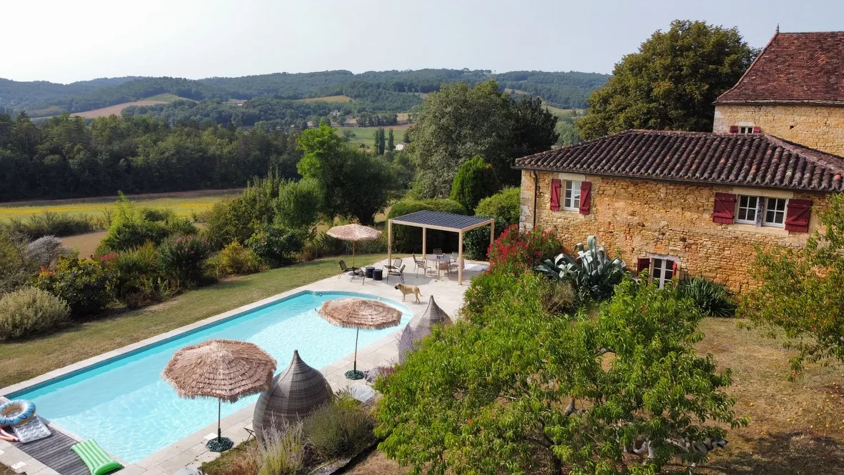 Geniet van het uitzicht op weide, bosrand, zwembad en het westen zover je kan kijken.