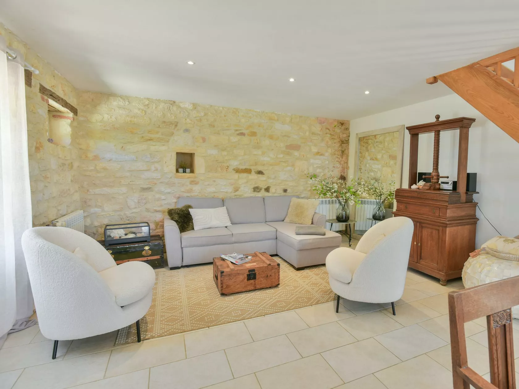 Deze 'en Pierre' gite ligt aan de binnenplaats van het chateau. Toegang zowel vanuit de binnenplaats, als het west-terras aan het zwembad.