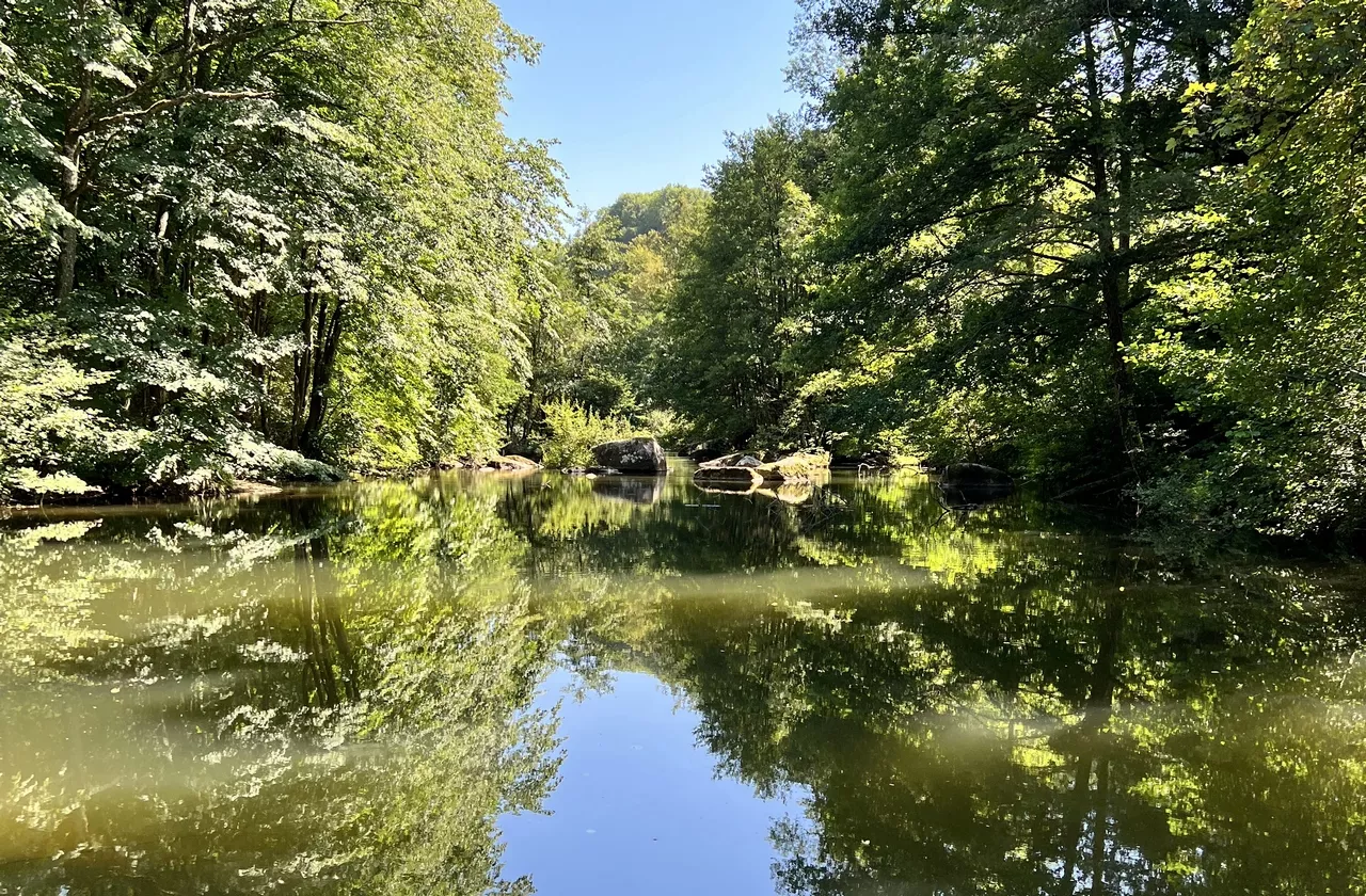 De rustieke gîte REFUGE DU PECHEUR, met directe toegang tot de rivier (privé vissen!).