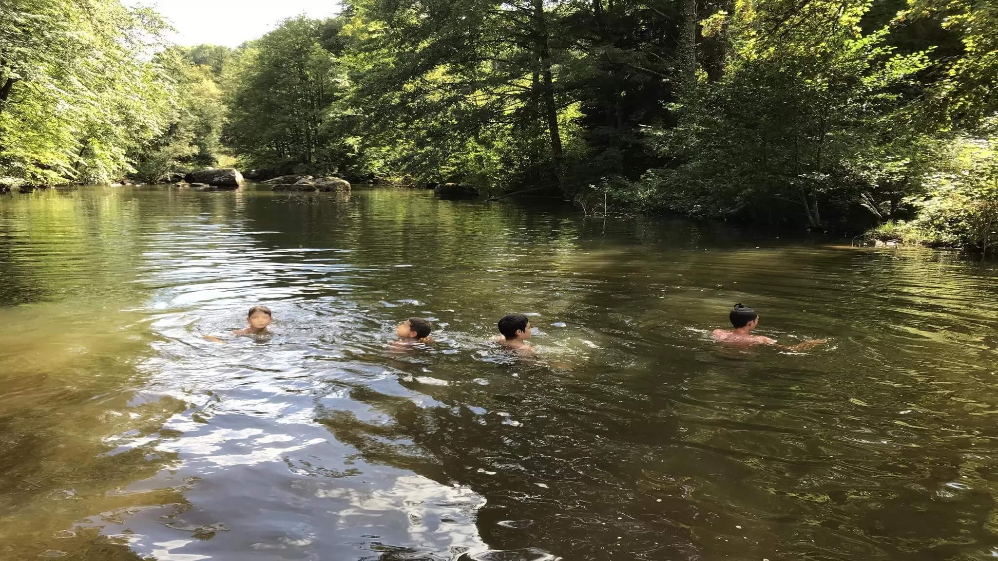 Het aparte terras met barbecue kijkt uit over de rivier en is omgeven door bos en groen. Ligstoelen beschikbaar, kinderbedje op aanvraag (gratis).