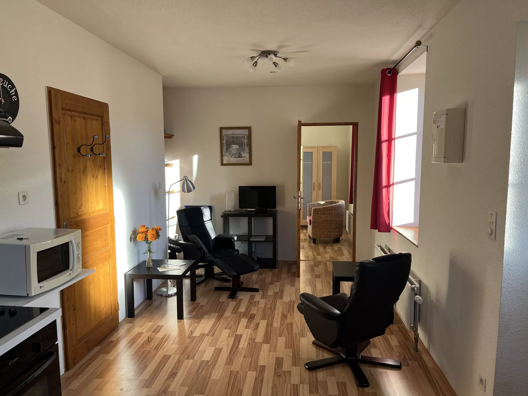 Gîte Le Plainet, vernoemd naar de berg waar u vanuit het terras op uitkijkt, is één van de appartementen op het terrein. Het onderkomen in het hoofdhuis bestaat uit een salon met open keuken, een badkamer met toilet en douche en een aparte slaapkamer.
