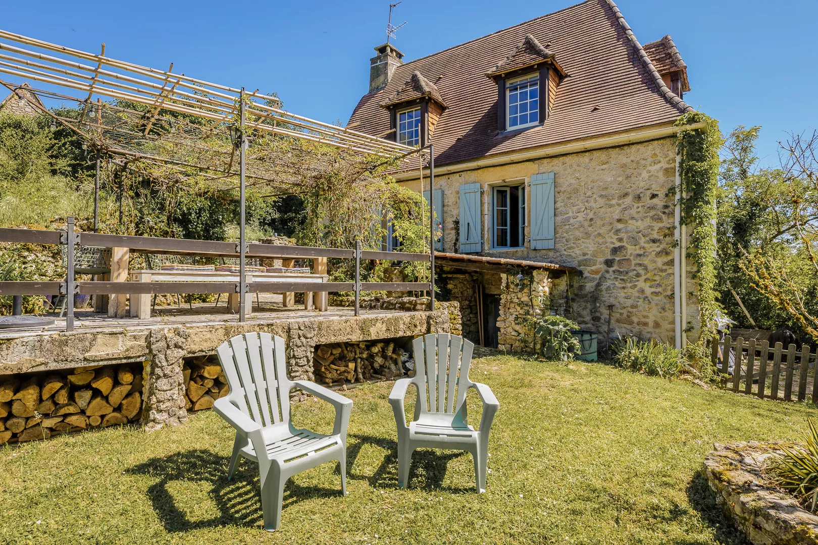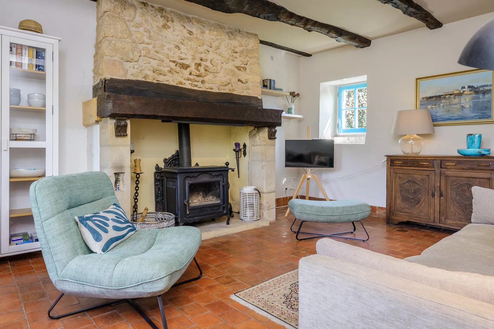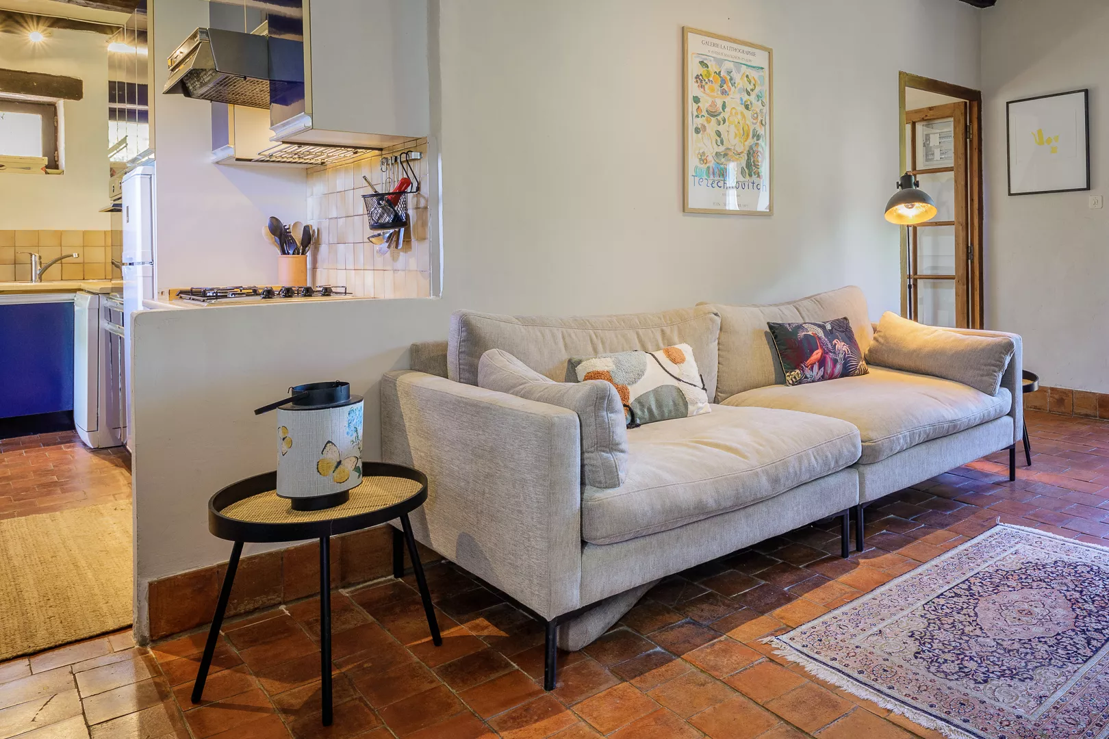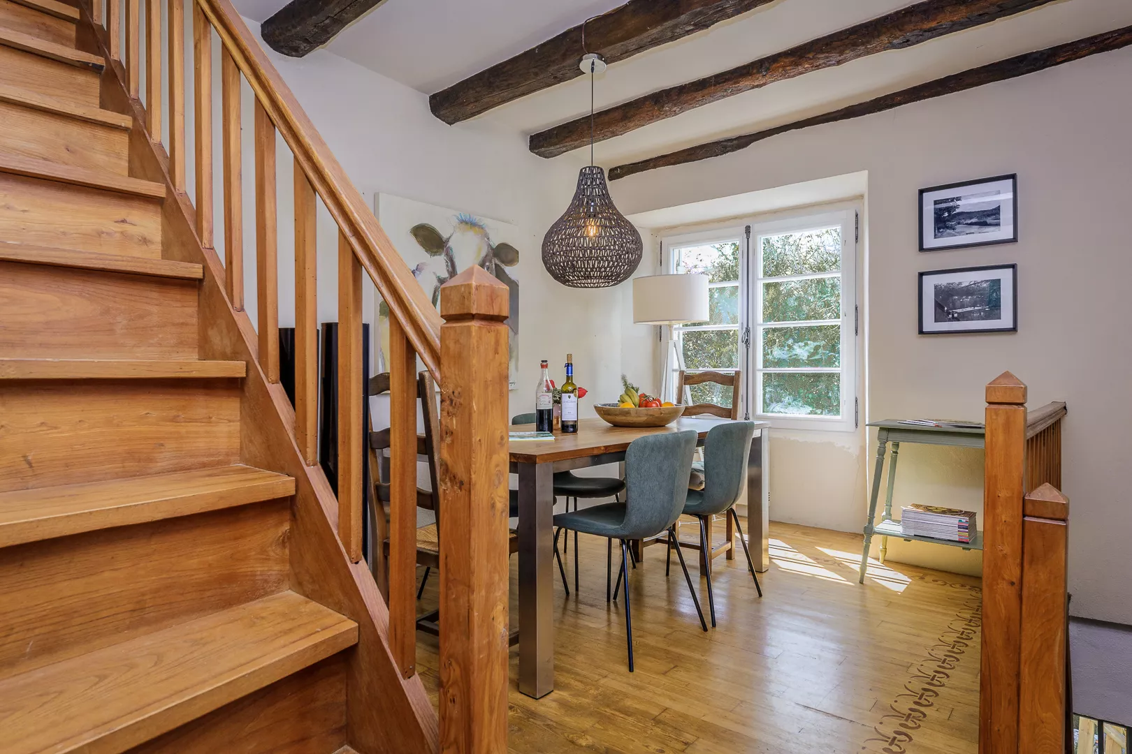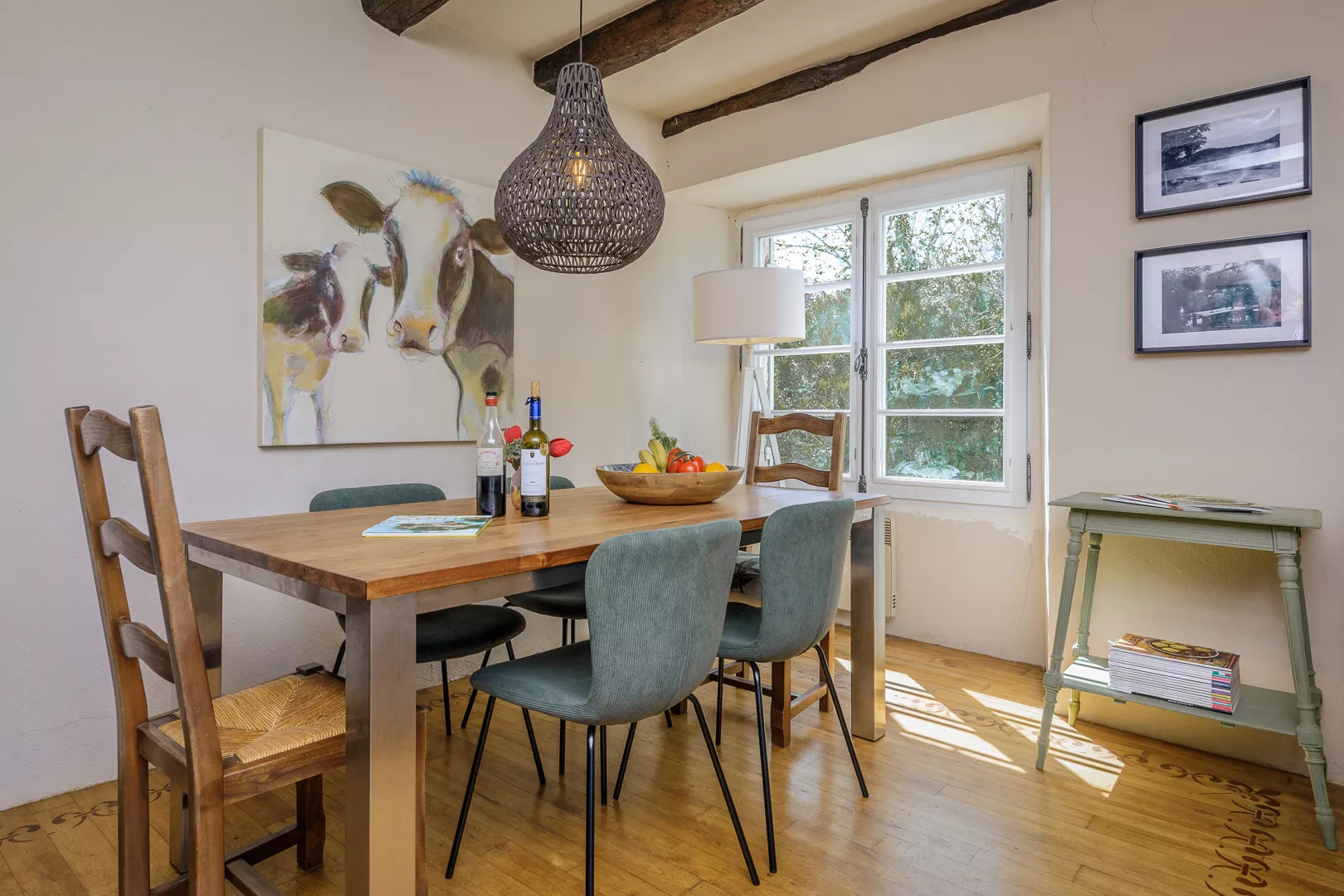 Geniet samen van de warm ingerichte woonkamer met kachel (natuurlijk niet vaak nodig) of maak een lekker Frans gerecht in de keuken met fijne eettafel… Vanuit de keuken loopt u zo het terras op met uw lekkere eten om op een van de terrassen samen te lunchen!