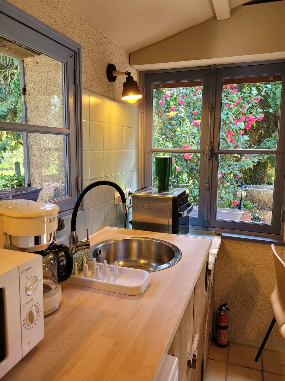 Deze gîte is een huisje dat comfortabel en sfeervol ingericht is voor 2 à 3 personen met een volledige uitgeruste keuken, een heerlijke inloopdouche.