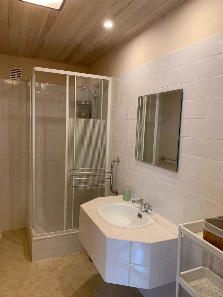 Deze gite heeft een grote woonkamer en een aparte keuken en is toegankelijk vanaf het eigen overdekte terras. Er is een ruime doucheruimte en een apart toilet..