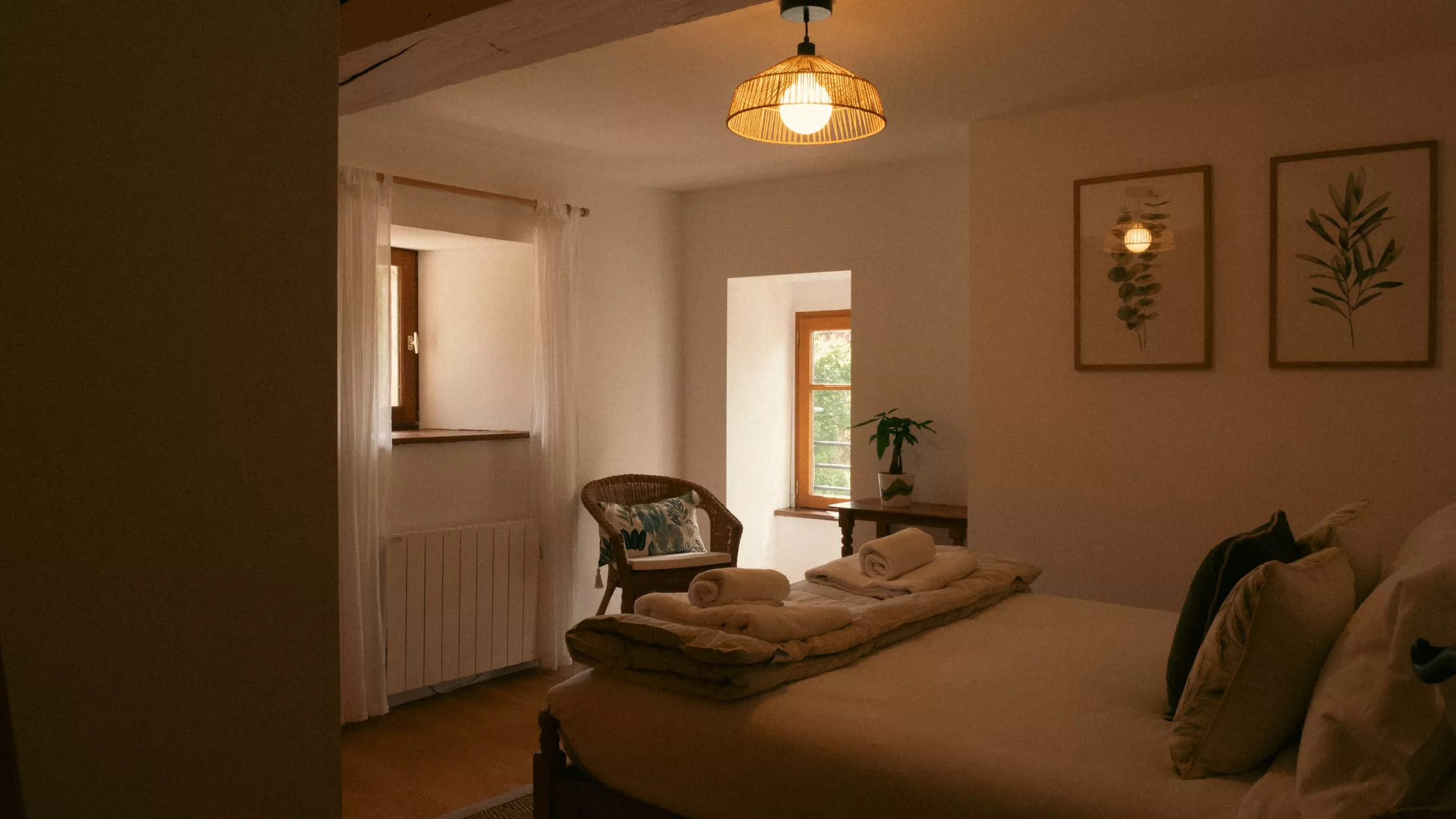 Maison les Bleuets heeft twee smaakvol ingerichte tweepersoonskamers, een met een bed van 160 cm en de andere van 140 cm. De bedden zijn bij aankomst opgemaakt met fris kwaliteitslinnen en het beddengoed is hypoallergeen. Zachte, donzige handdoeken, badjassen en slippers zijn ook aanwezig.