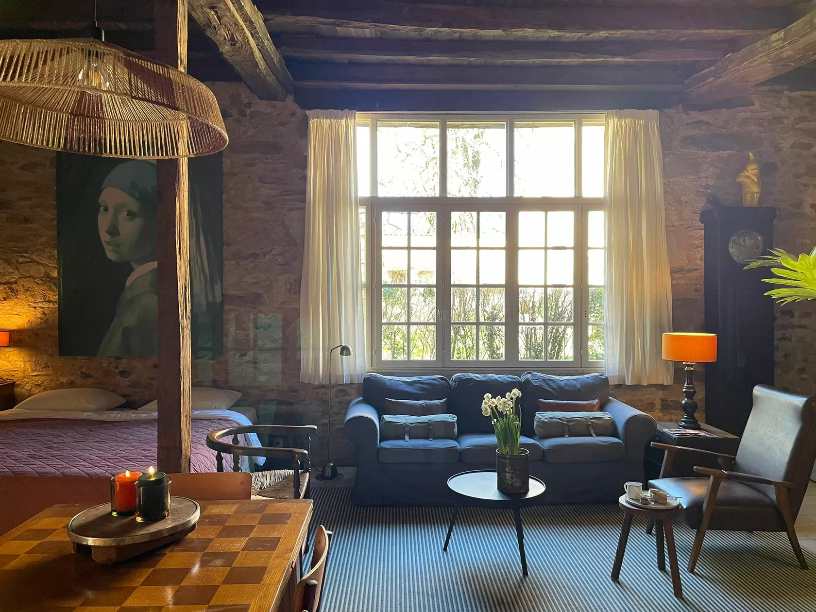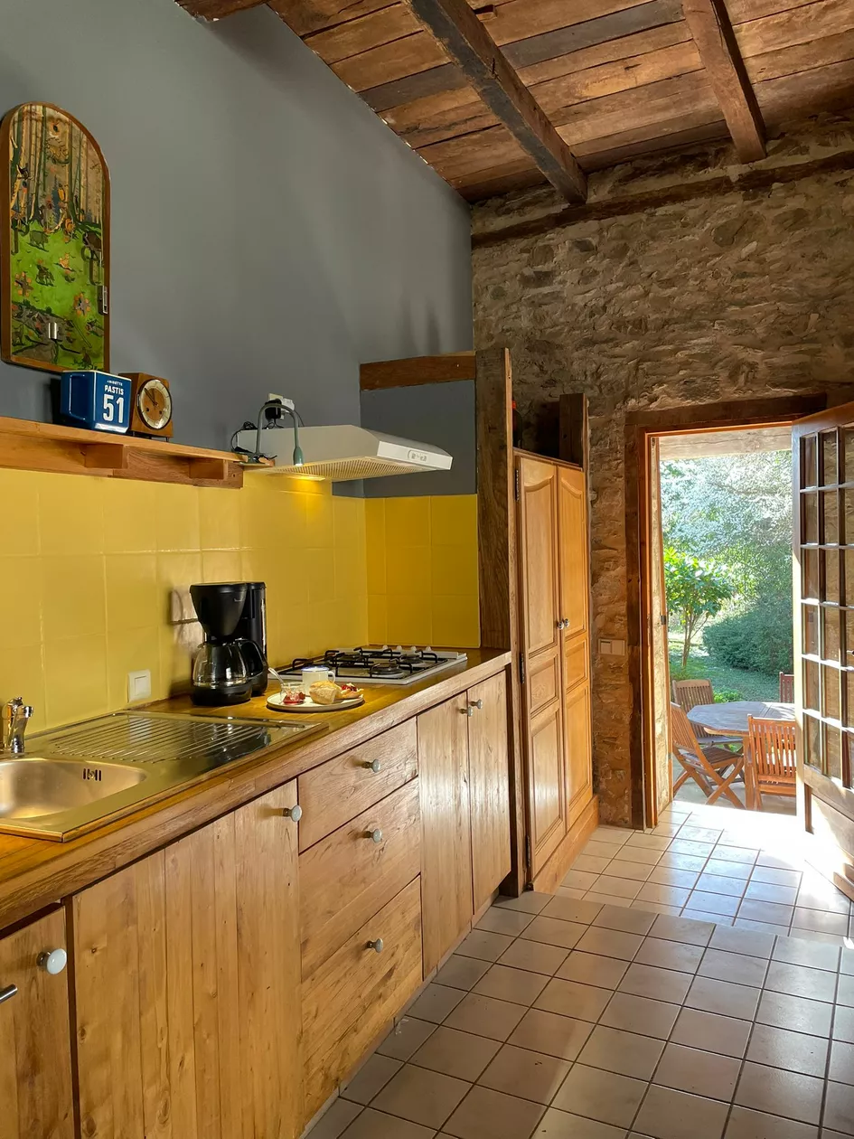 Deze ruime, stijlvolle vijfpersoons gîte is een fijne plek om te verblijven.