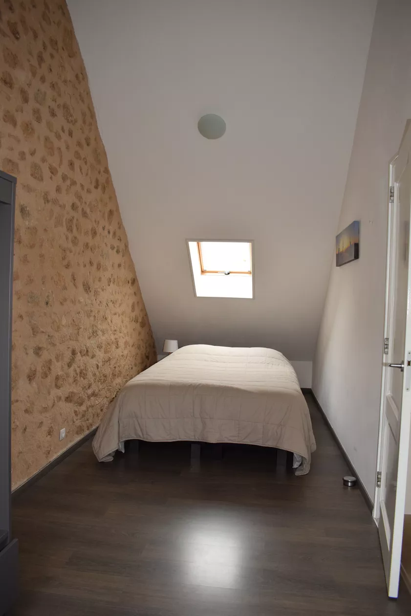 • Vanuit de keuken gaat u met de trap naar boven. U komt in de eerste slaapkamer. Hier staat een twee persoons bed ( matrasmaat 1.60 x 2.00 met één tweepersoonsdekbed van 2.20 x 2.40 cm ) 2 tafeltjes met bedlampjes en ladekasten.