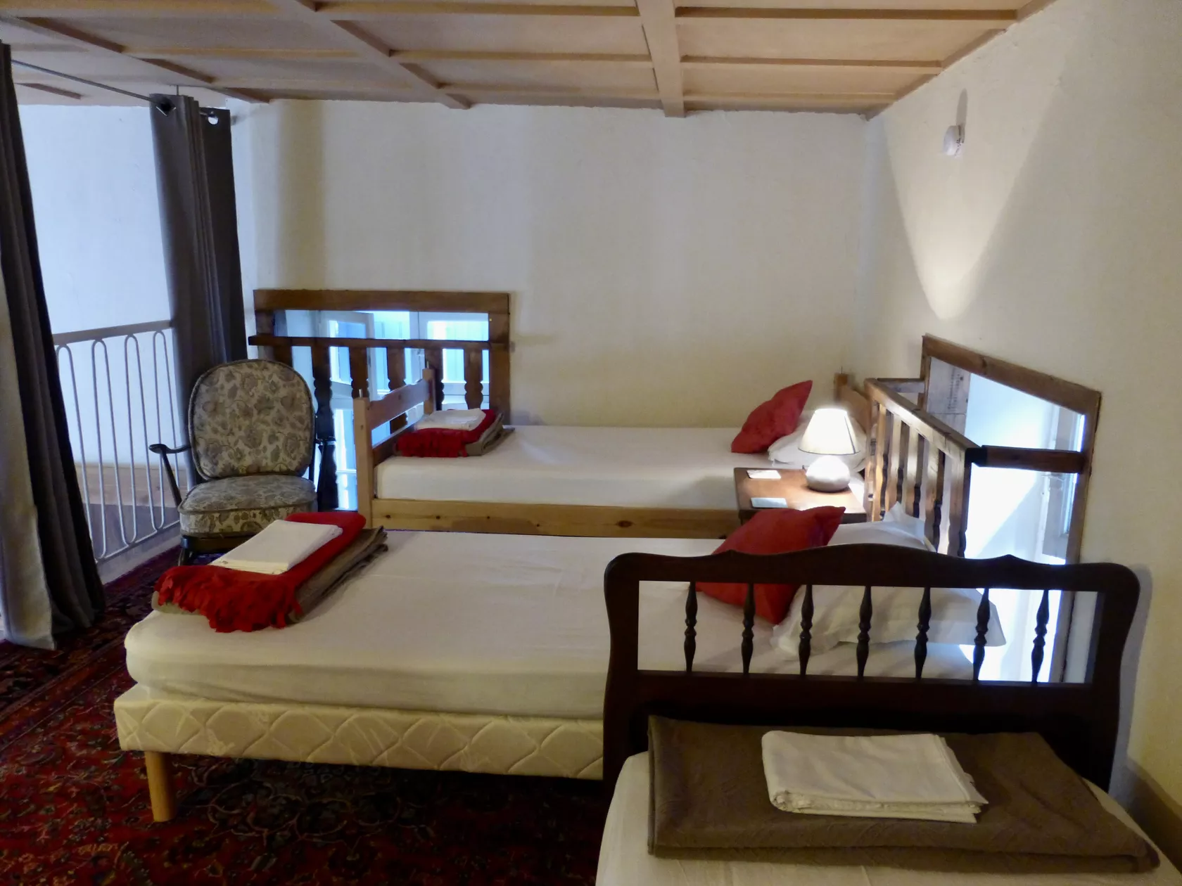 De tweede slaapkamer is een mezzanine met drie eenpersoonsbedden (elk 90 x 190).