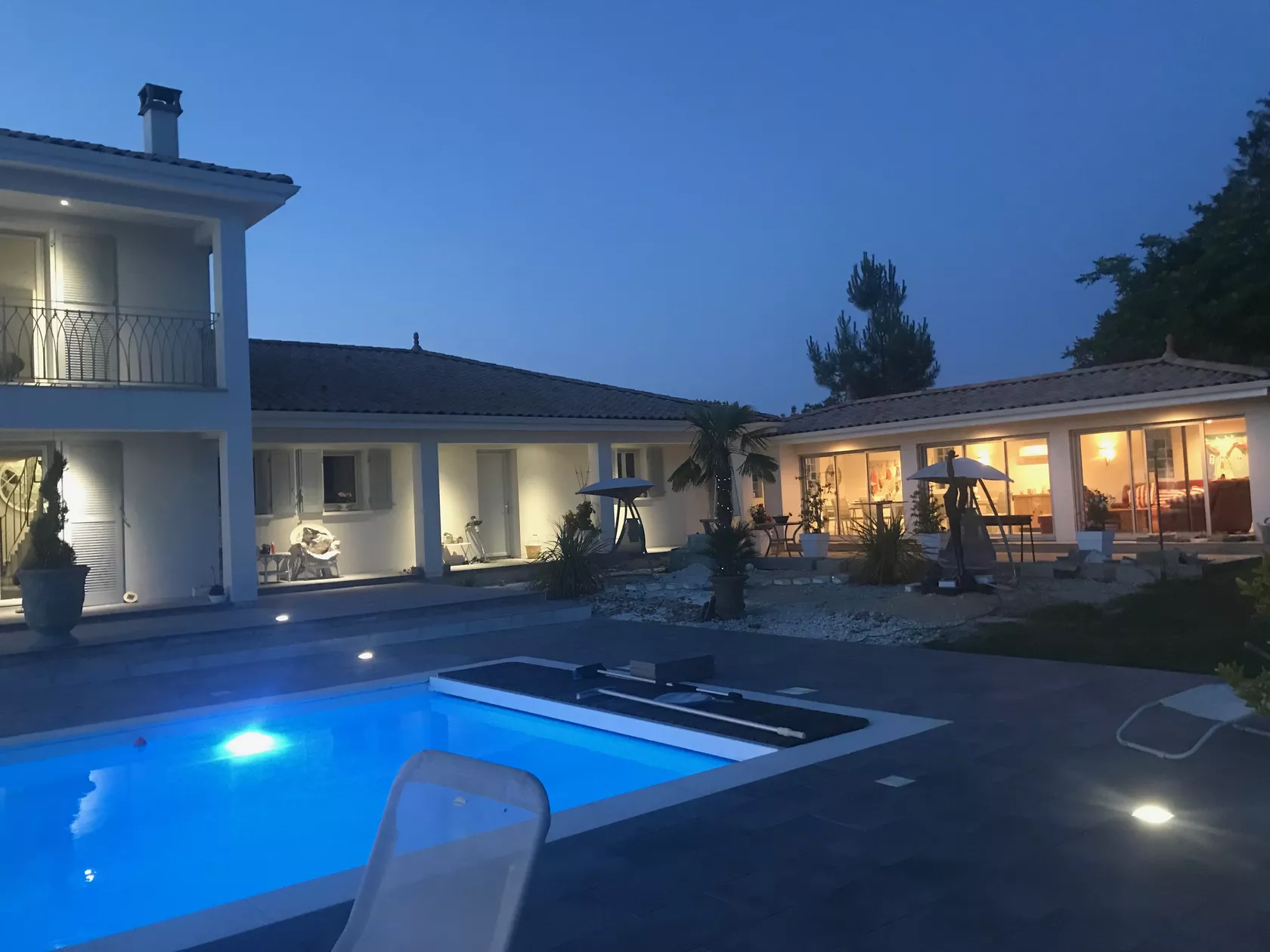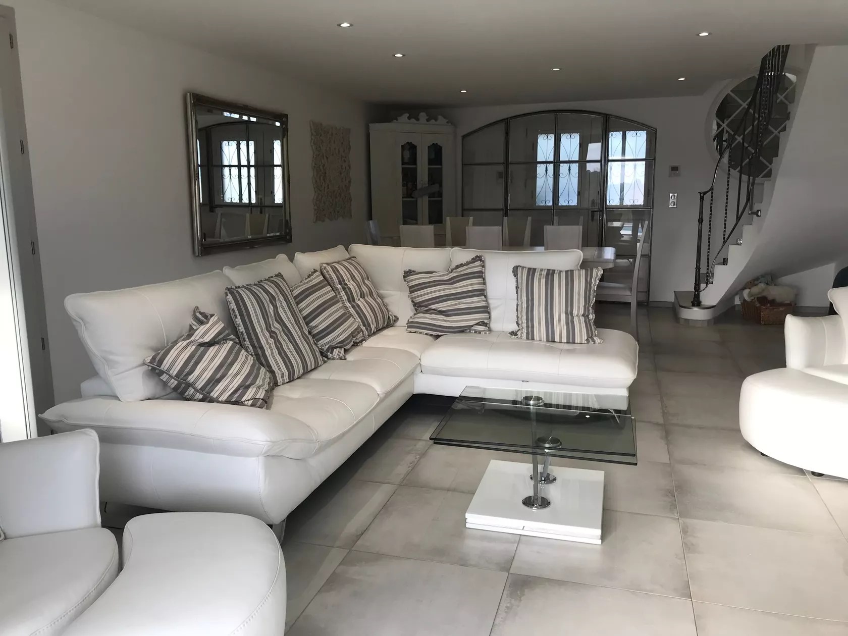De keuken is open en zeer goed uitgerust met een inductiekookplaat, een koffiezetapparaat en nog veel meer. Vanaf het terras is er een tuinkamer met nog meer leren banken en een eettafel, perfect om te ontspannen of te genieten van de BBQ die op het terras staat. Er zijn Smart televisies in elke slaapkamer en in de woonkamer die ook is aangesloten op Canal Plus.