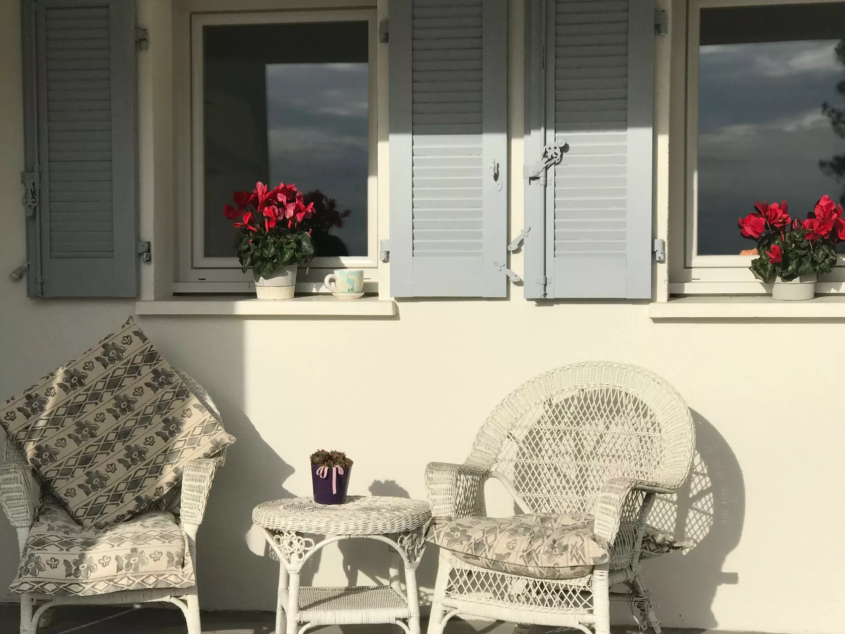 De villa heeft twee slaapkamers op de begane grond die elk uitkomen op het overdekte terras op het zuiden en het zwembad. De derde slaapkamer op de eerste verdieping heeft een balkon. Elke slaapkamer heeft een eigen ensuite badkamer.