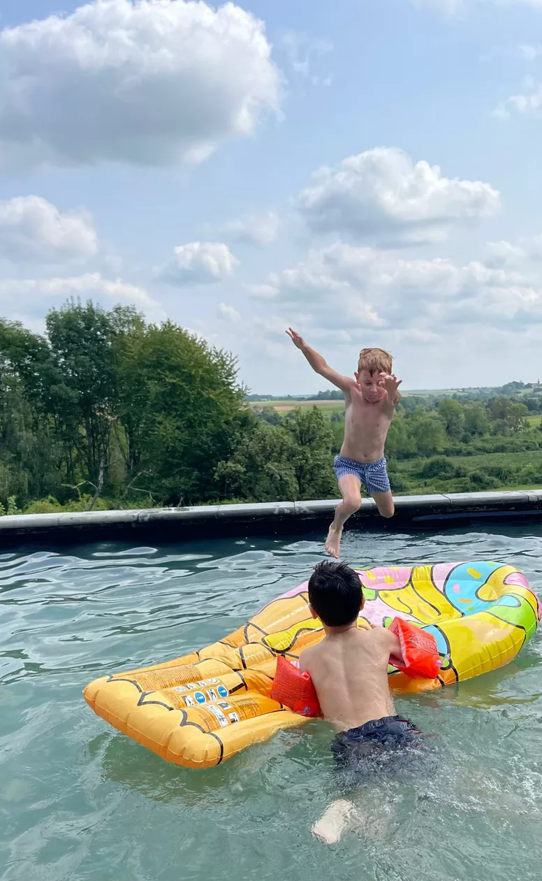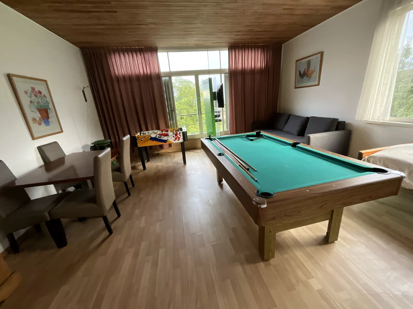 Geen luxe design, maar een warme plek met enorm veel speelruimte voor kinderen: speelkamer met o.a. biljart, voetbalspel, beamer en Xbox én een 250 m² grote speelzolder. Grote tuin met eenvoudig zwembad en groot poolhuis met zeer ruime eettafel en zitje .Bos op 3 minuten lopen. Drie ruime slaapkamers, kleien kamer met stapelbed, grote zitkamer met insert, eetkeuken en grote eettafels binnen en buiten.