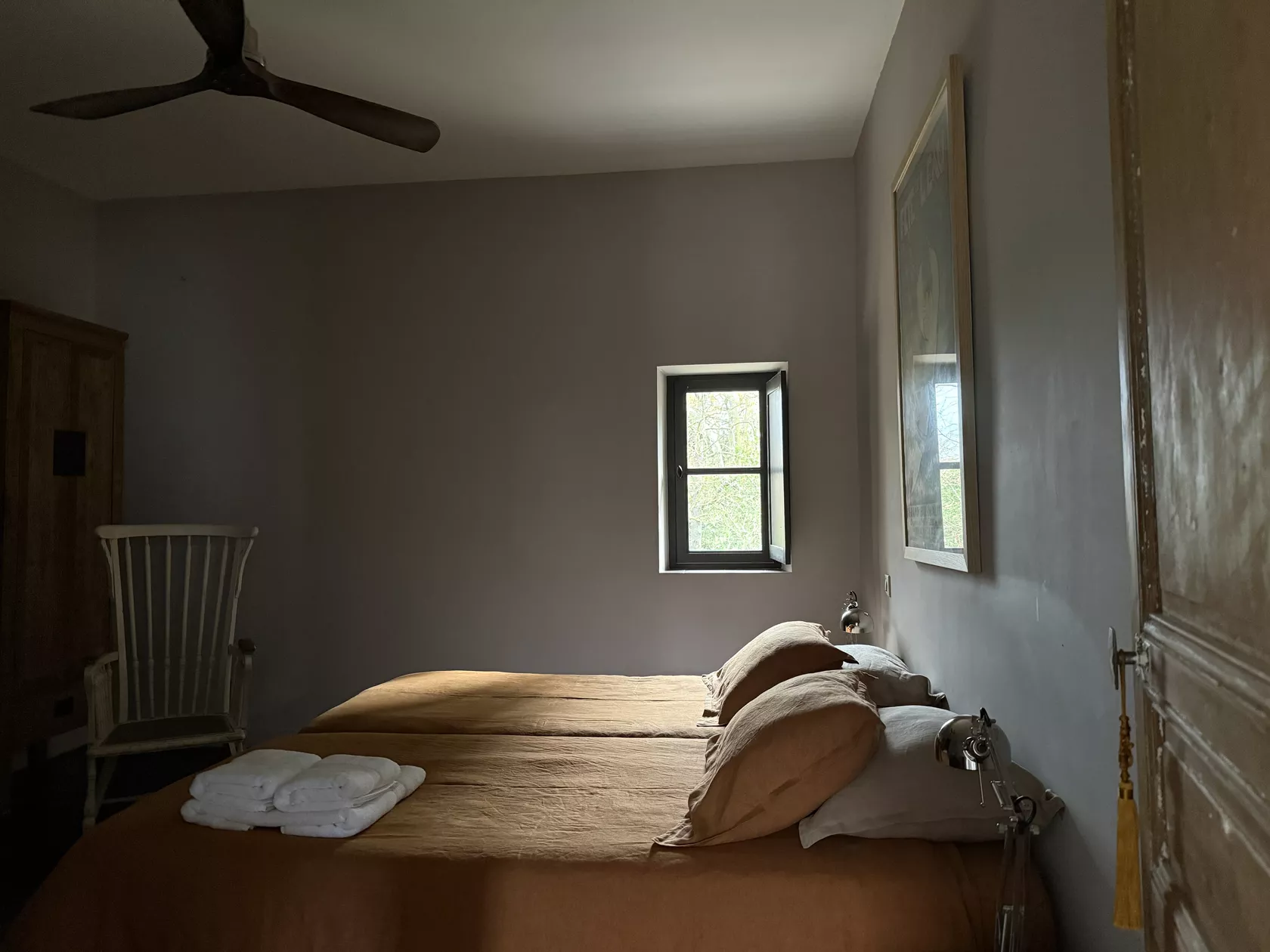 De slaapkamers zijn uitgerust met plafondventilatoren.