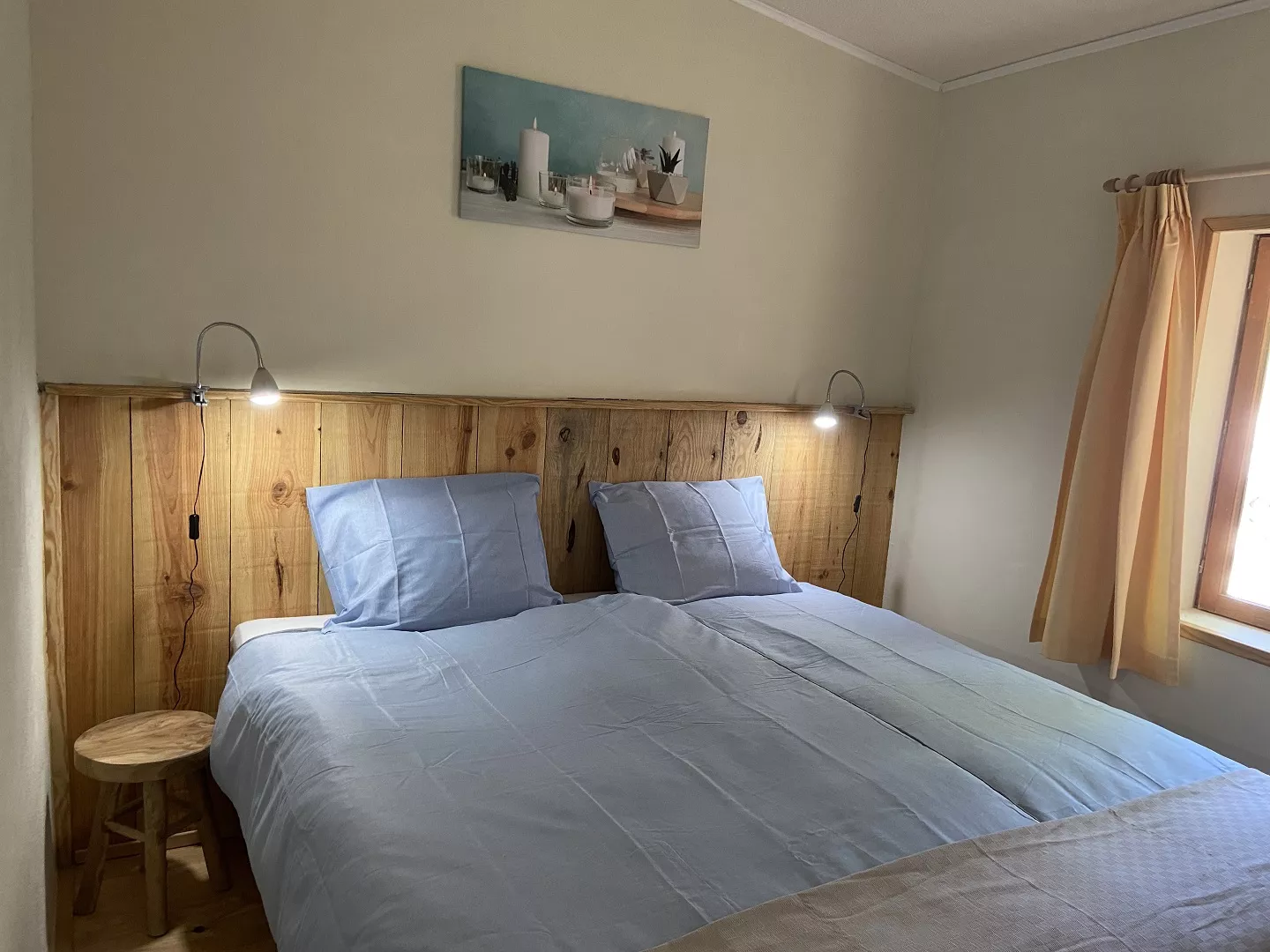 Er zijn twee slaapkamers en een badkamer met douche, toilet en badmeubel. In beide slaapkamer staat een 2-persoon Boxspring (180x200).