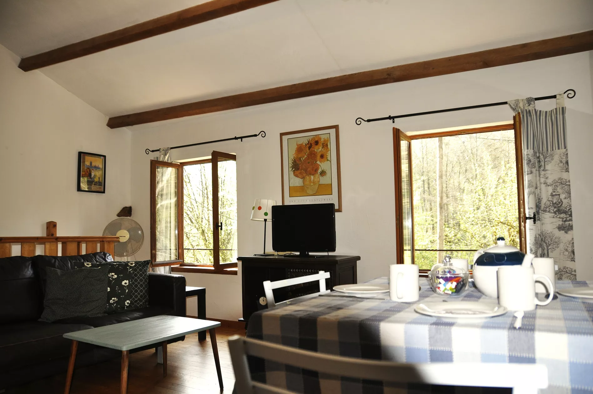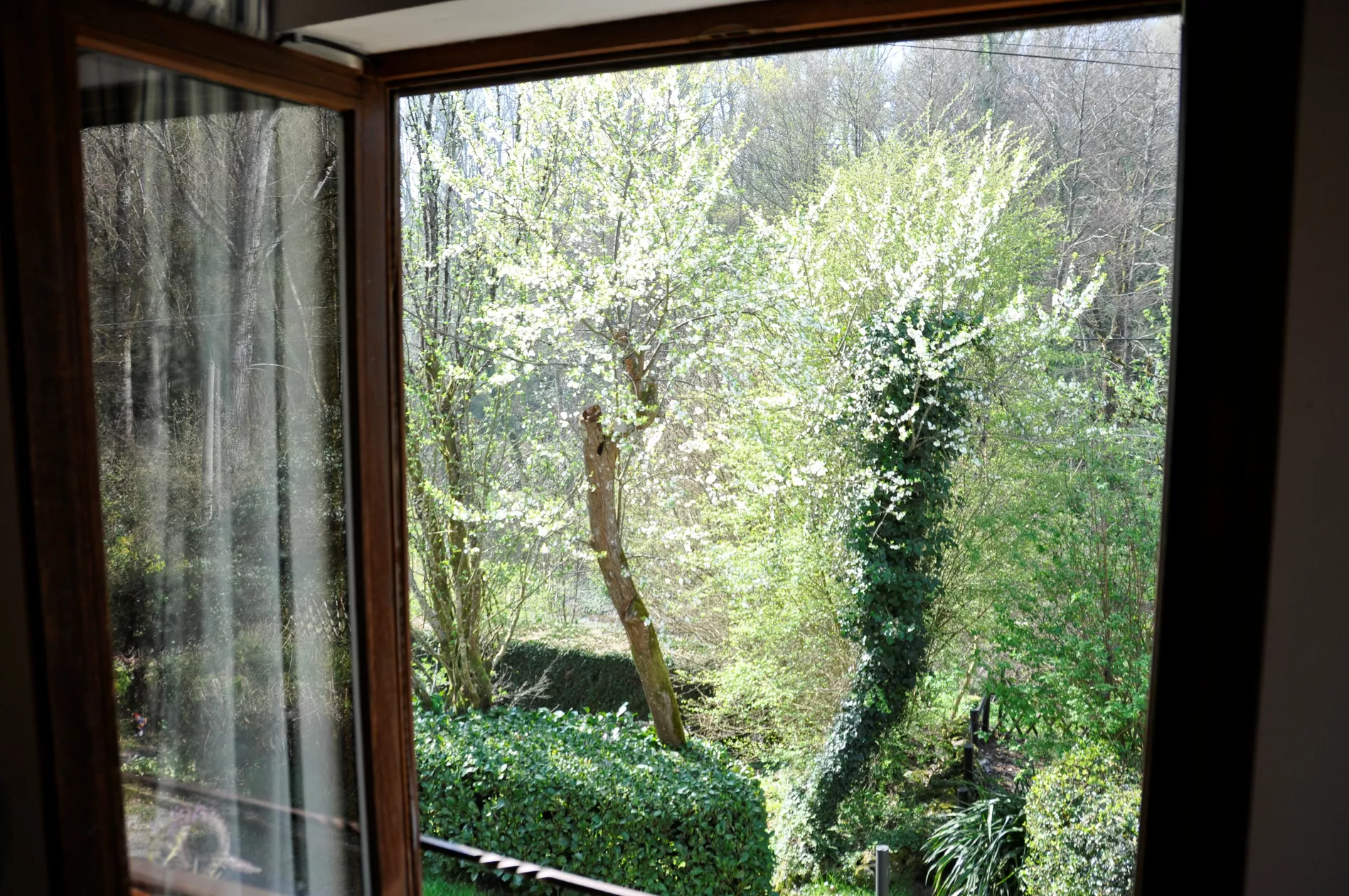 Panoramisch uitzicht: Geniet vanuit de woonkamer van het weidse uitzicht over de bosrijke vallei en het Franse platteland.