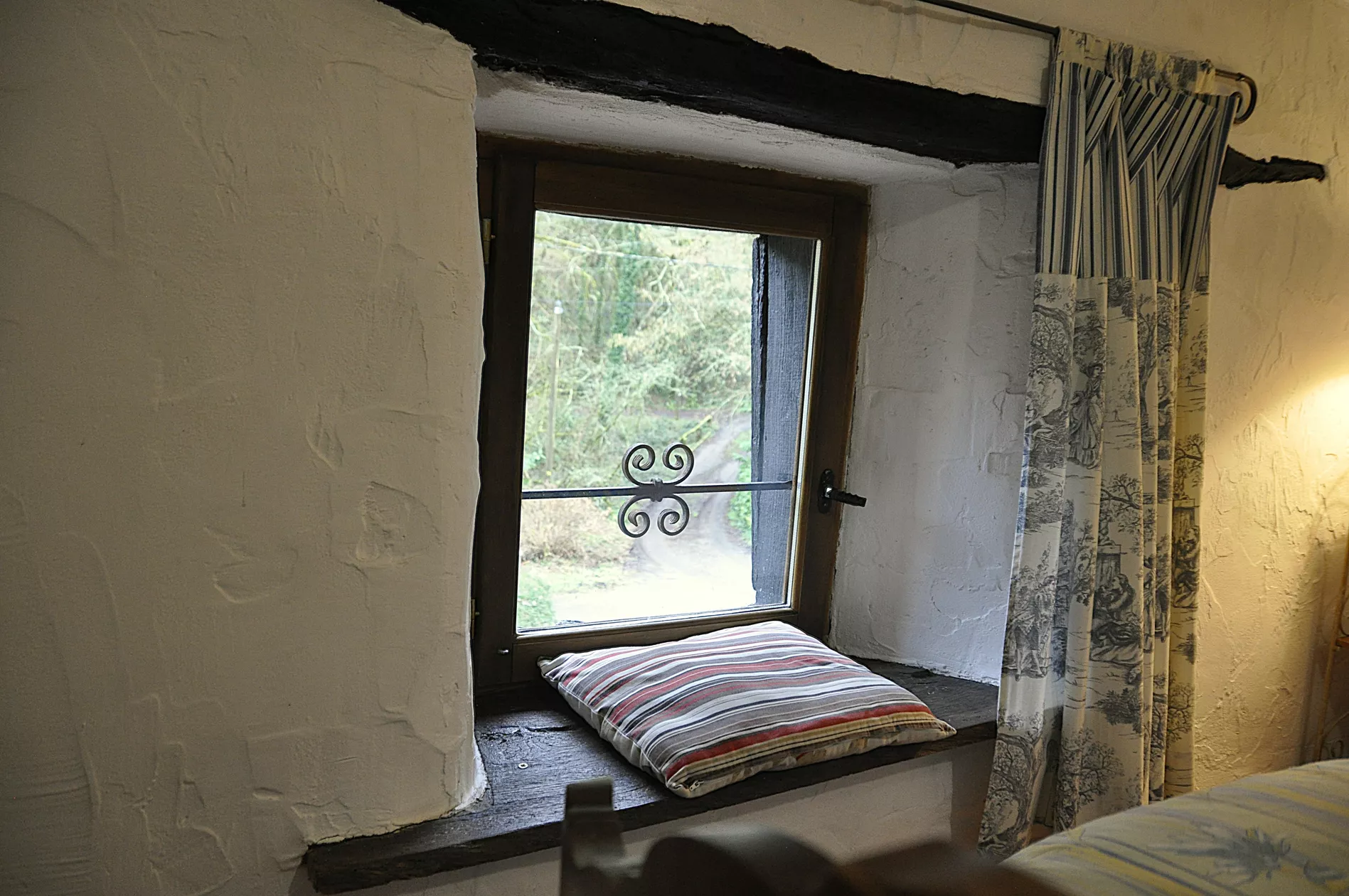 De 2 slaapkamers hebben originele eiken balken en bieden uitzicht op de bossen aan de voorzijde. Er zijn elektrische radiatoren in elke slaapkamer.