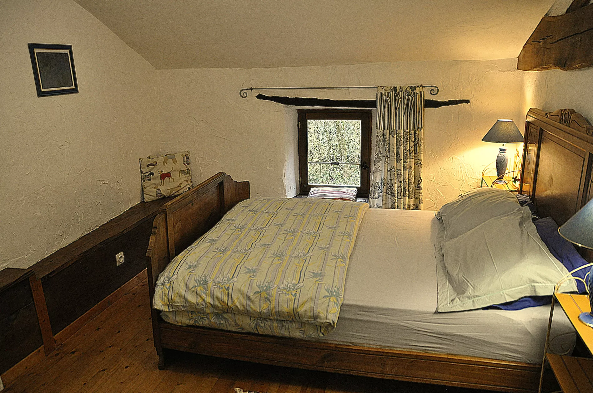 Slaapkamer 1: Met een prachtig antiek Frans tweepersoonsbed en uitzicht op de bossen.
