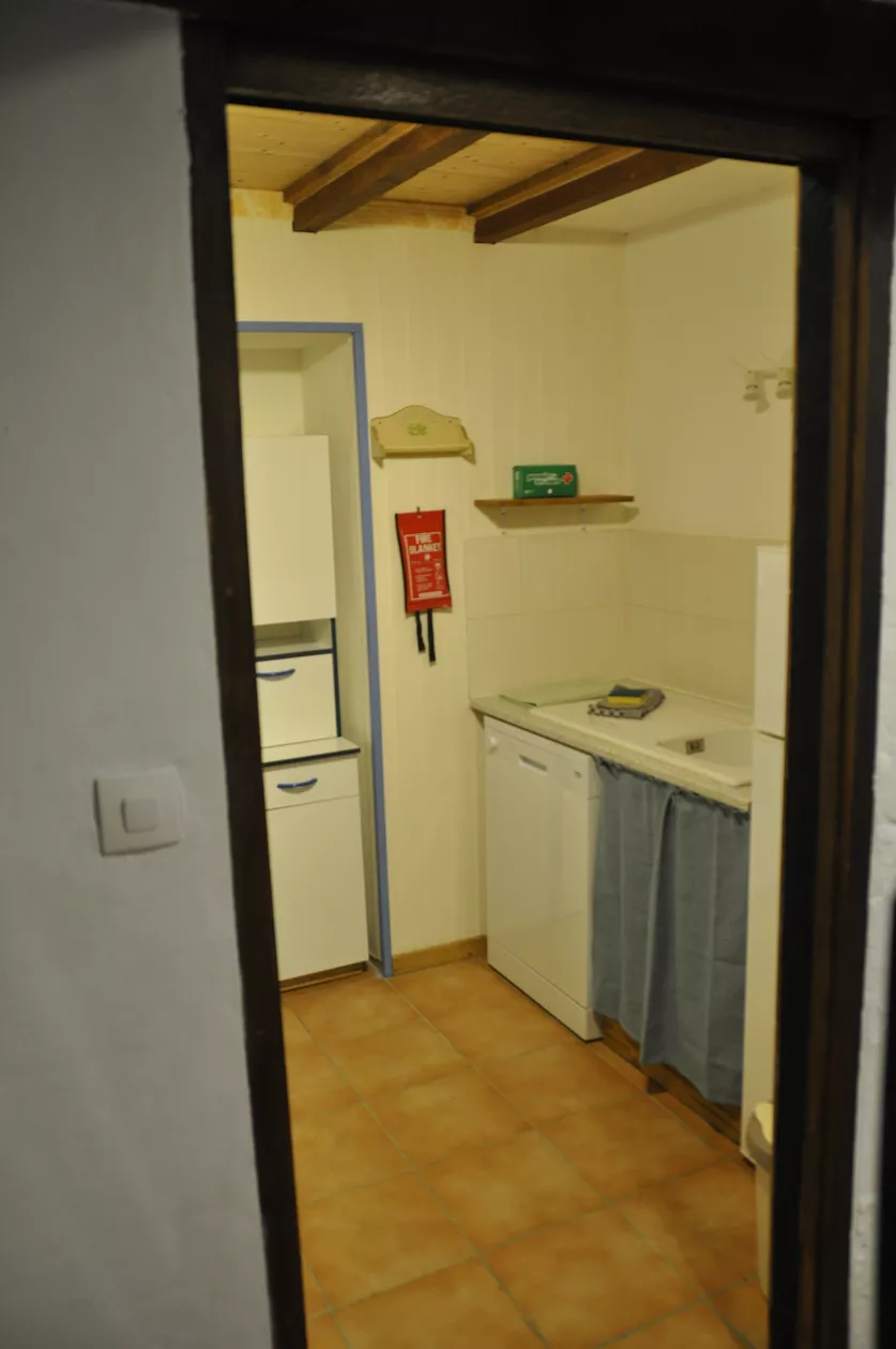De goed uitgeruste keuken heeft een gasfornuis, een koelkast met vriesvak, een magnetron en een wasmachine.