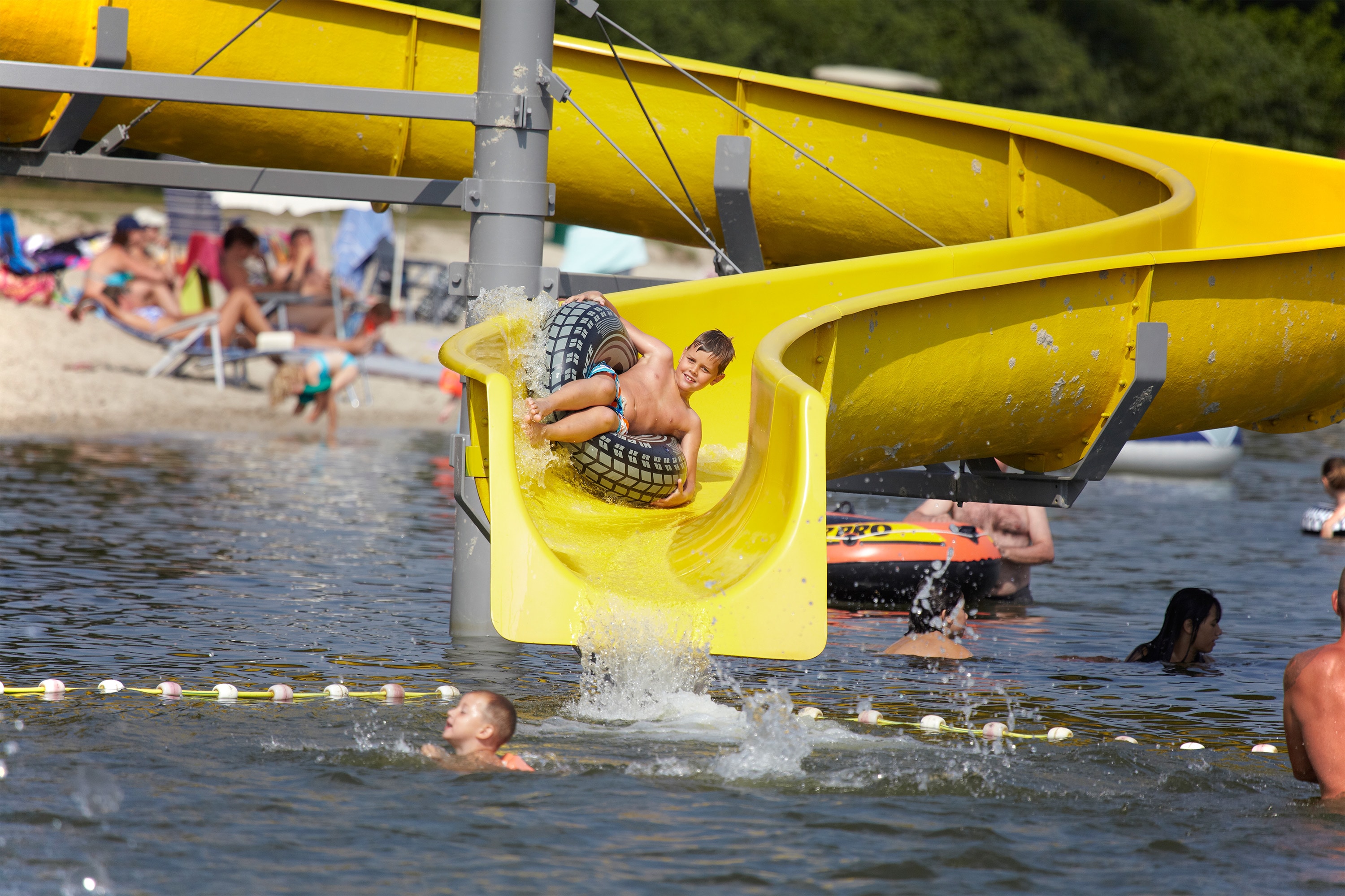 Ga je naar buiten of blijf je toch binnen? Buiten kun je je uitleven in en op de zwemplas. Lekker zwemmen in natuurwater, zonnen op het zandstrand of sjezen van een van de glijbanen.