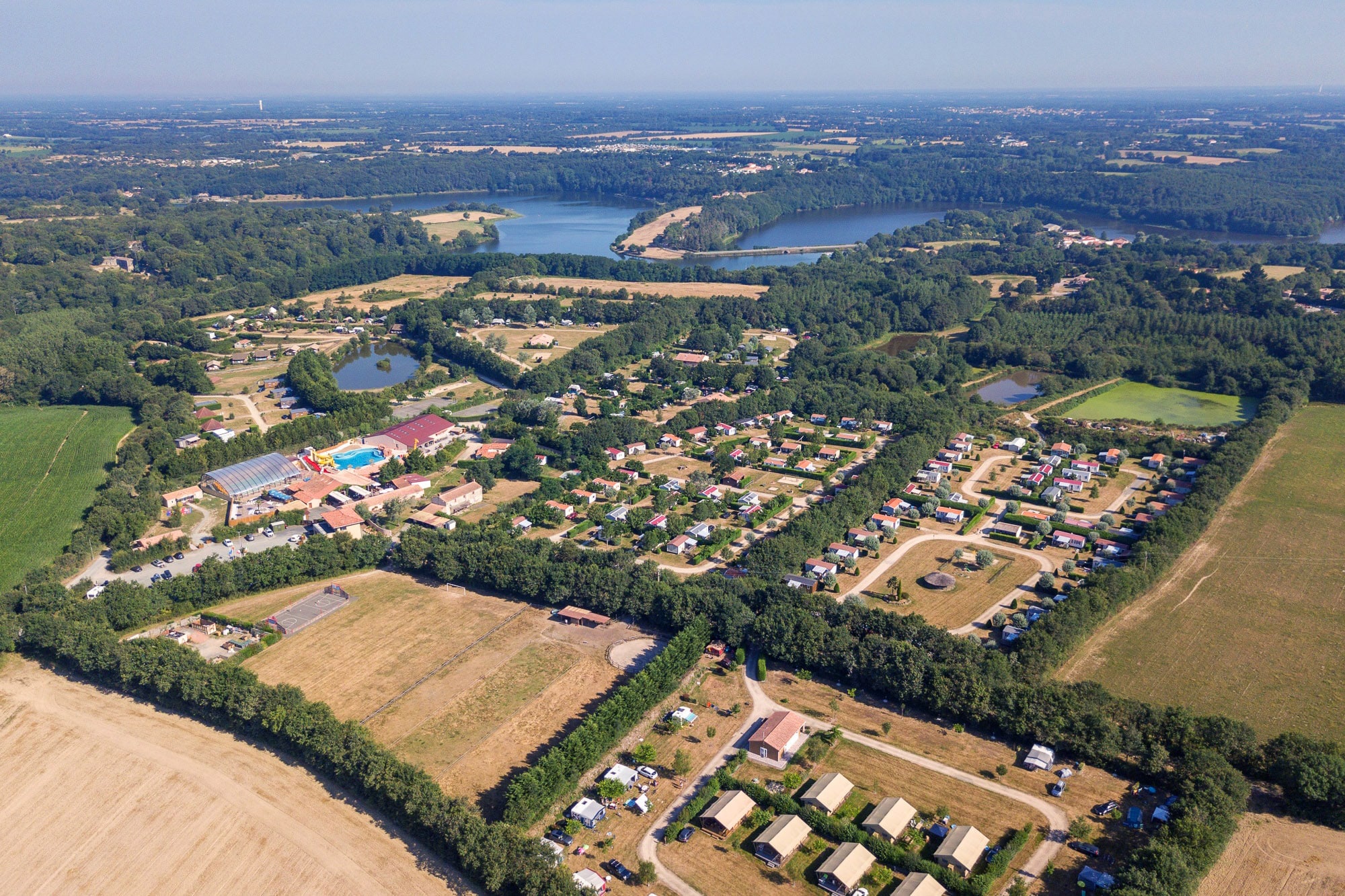 Camping Village de la Guyonnière is een prachtige, groene vijfsterrencamping op een landgoed van 30 hectare, grenzend aan het mooie meer van Jaunay in de Vendée.