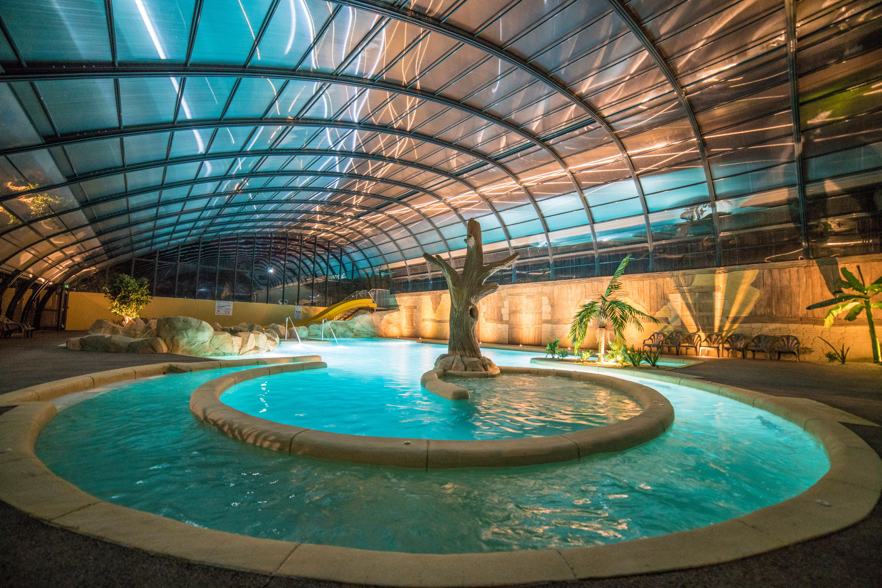 Niet alleen de omgeving (Vendée) van Camping Village de la Guyonnière is mooi, ook het park zelf biedt veel vertier. Leef je uit in het waterpark met glijbanen, aquagames en een spa, allemaal verwarmd en overdekt. Om nog maar te zwijgen van het verwarmde buitenzwembad, met een glijbaan, een 65 meter wilde rivier en grot, een zwembad en peuterbad.