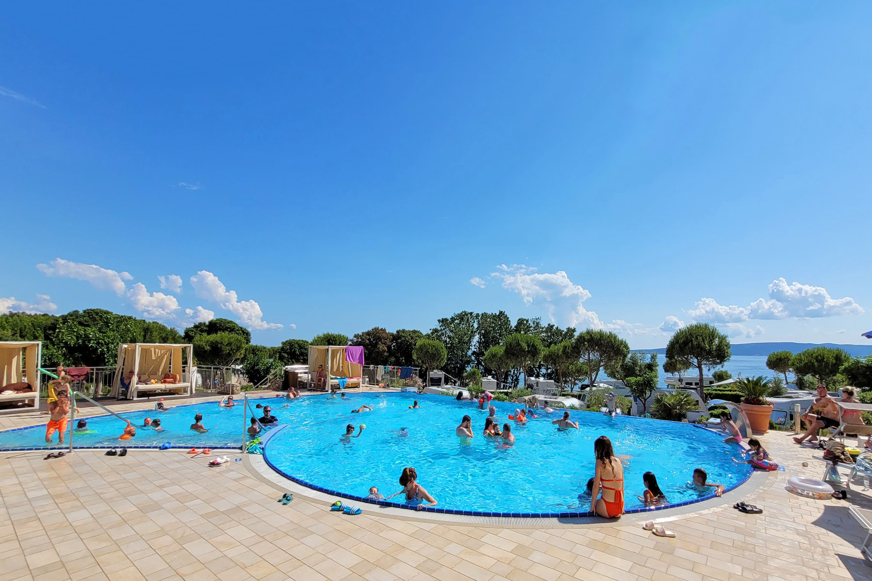 Bijna overal op Valamar Camping Krk kijk je uit over de Adriatische Zee. Maar het mooiste uitzicht heb je vanuit het zwembad. Neem dus een duik en geniet! Extra lekker: het zwembad is verwarmd.
