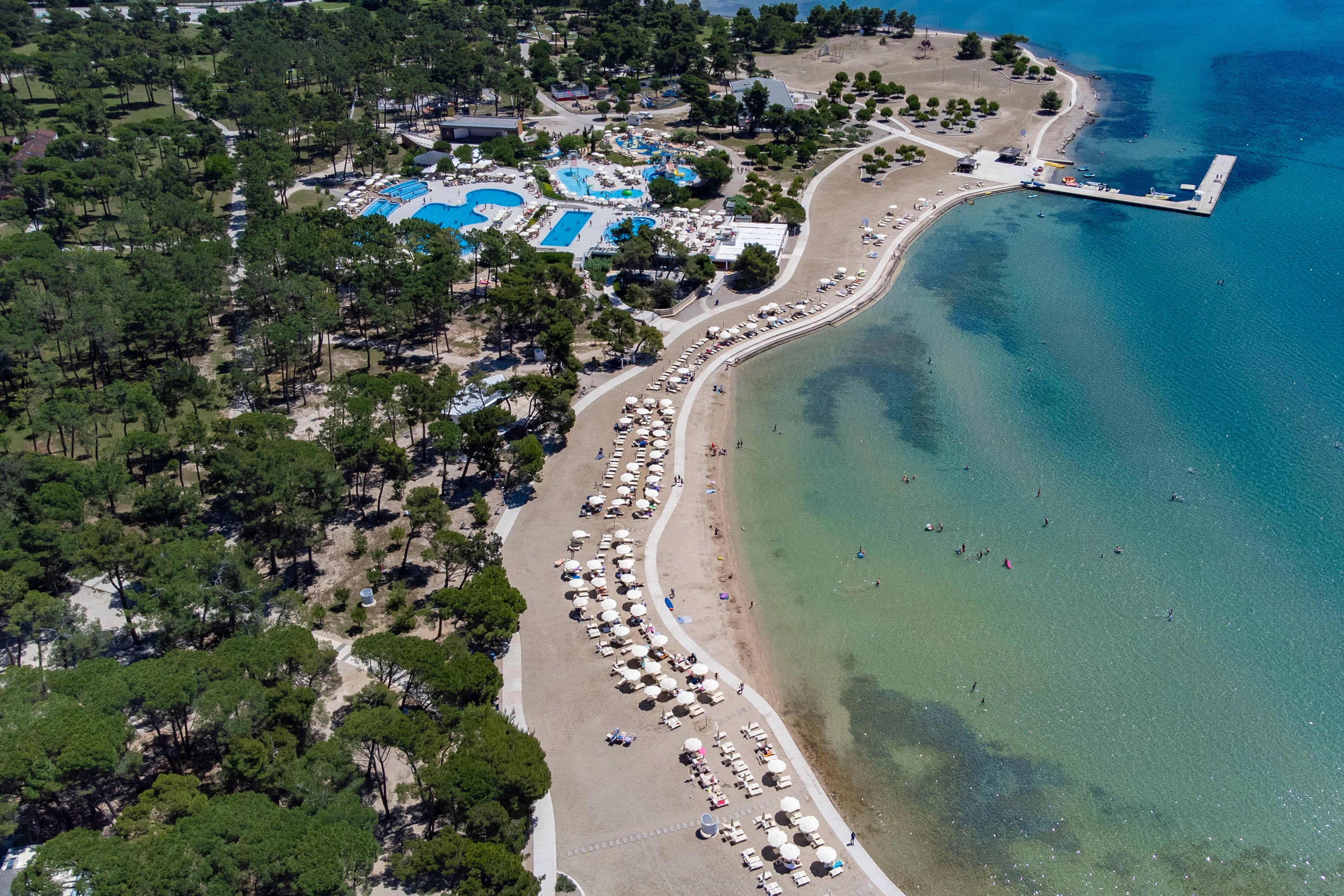Het zwemparadijs op camping Zaton Holiday Resort is een van de grootste zwemparadijzen aan de Adriatische kust. Met een waterspeeltuin en verschillende zwembaden geniet jong en oud hier van het water. Je loopt binnen een paar passen van de zwembaden naar het strand. Daar kun je heerlijk in het zand liggen of zwemmen in de Adriatische Zee.