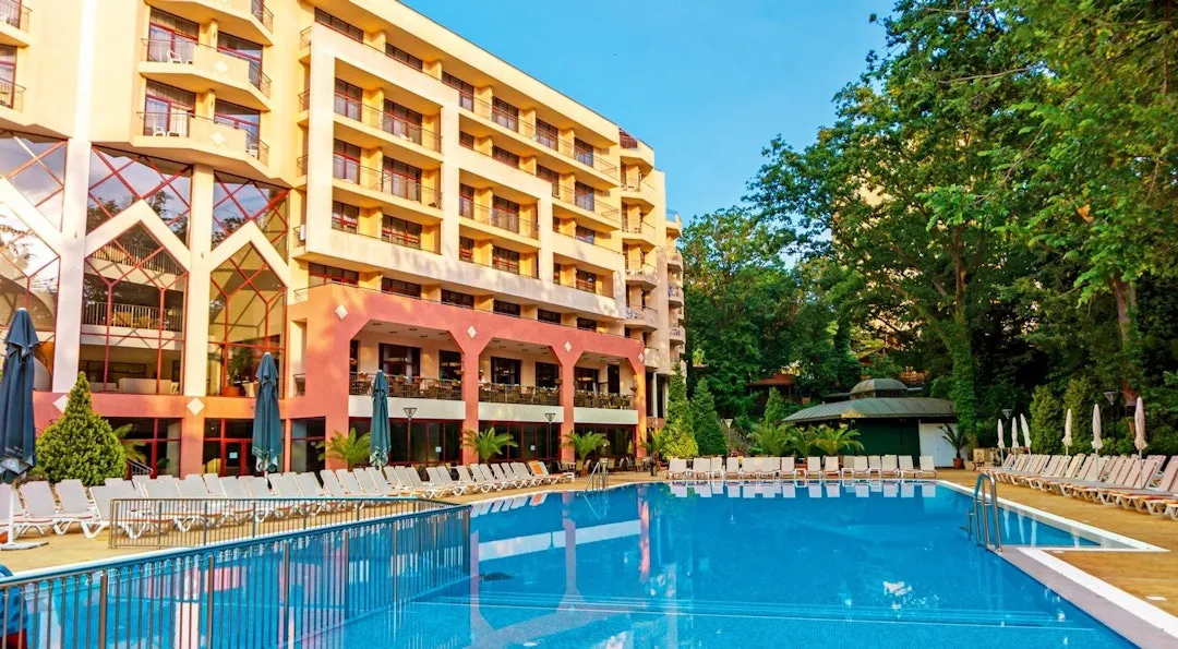 Park Hotel Odessos is omgeven door groen en ligt niet ver van het heerlijke zandstrand van Golden Sands.