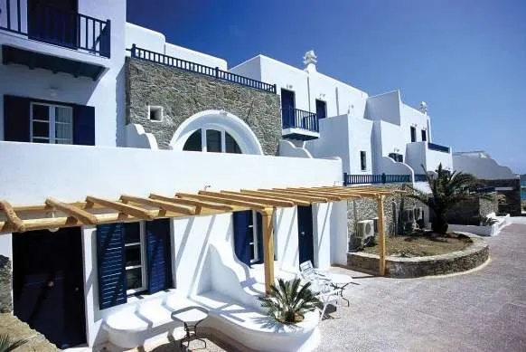 Het bevindt zich in de buitenwijken van de stad Mykonos, op een afstand van maar 300 m van het centrum, op 1 km van het dichtstbijzijnde strand. Het biedt de gasten zowel de voordelen van de stad als ook van de plaatselijke zandstranden..