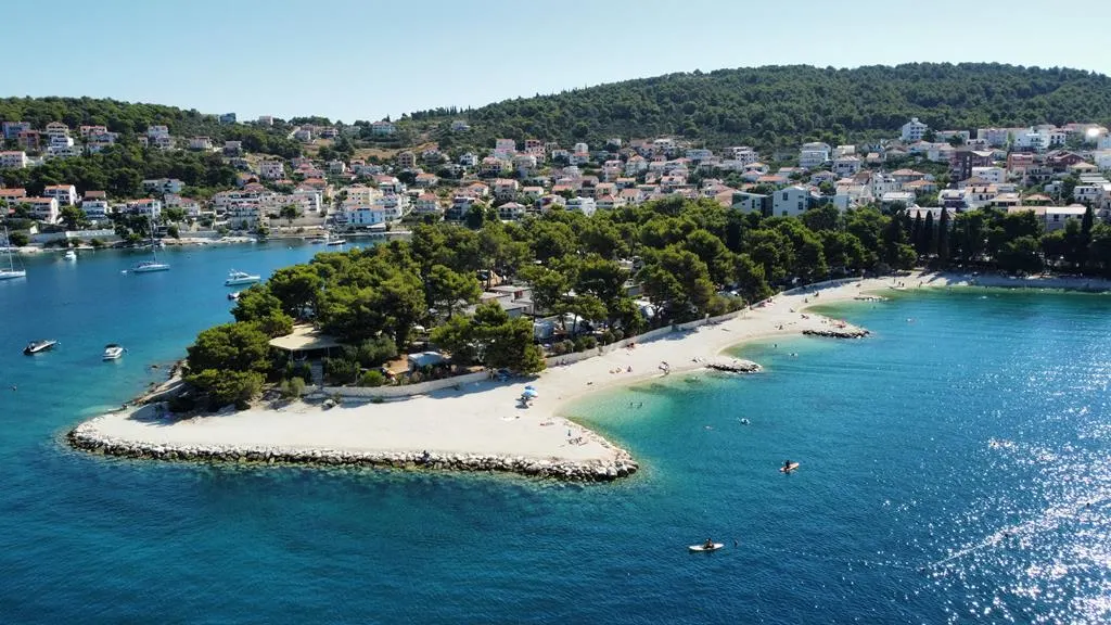 Rozac is een populaire camping gelegen aan een aan twee kilometer lang kiezelstrand op het eiland Ciovo.
