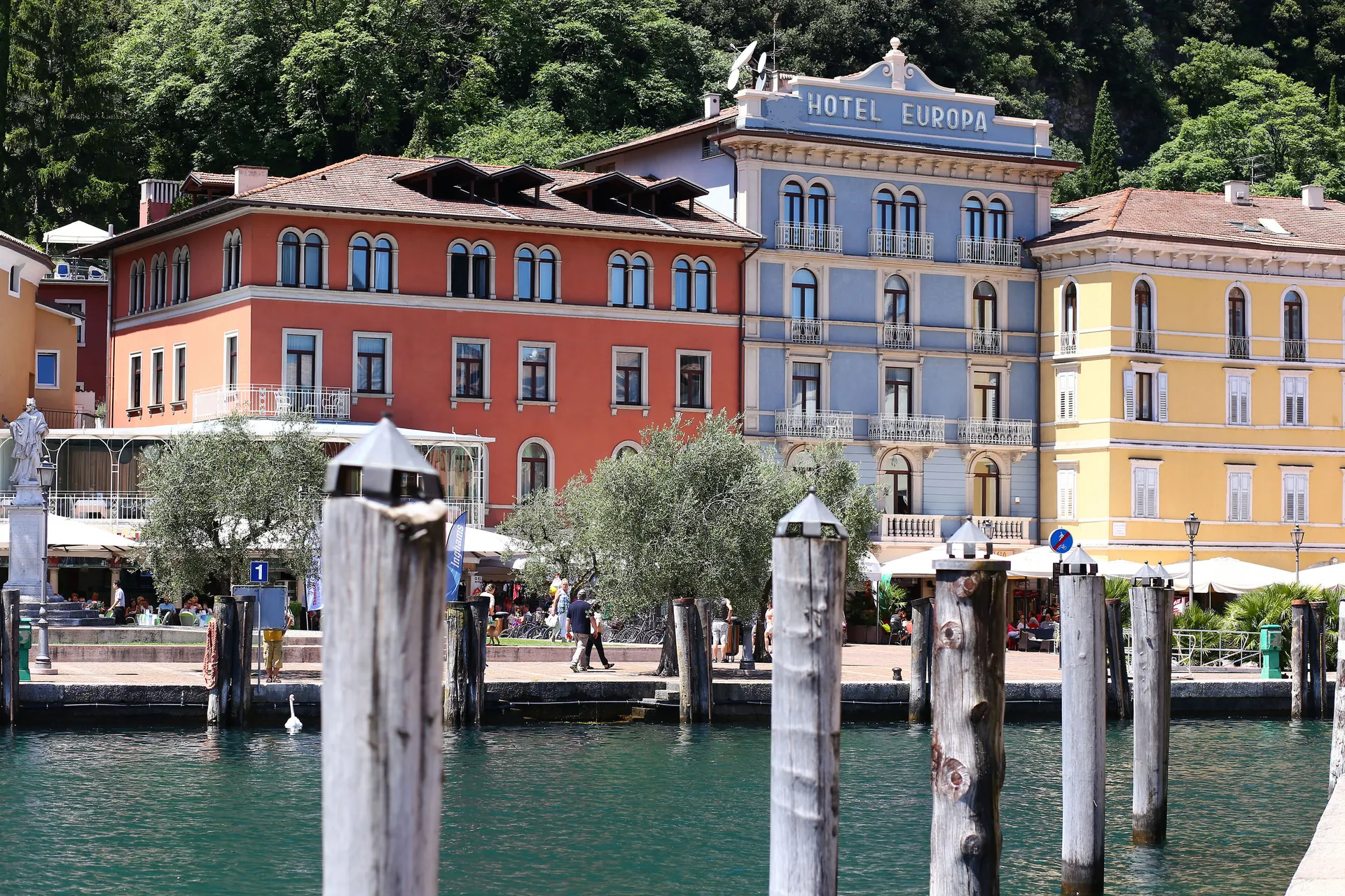 Het hotel ligt direct aan het strand, centraal in Riva del Garda..
