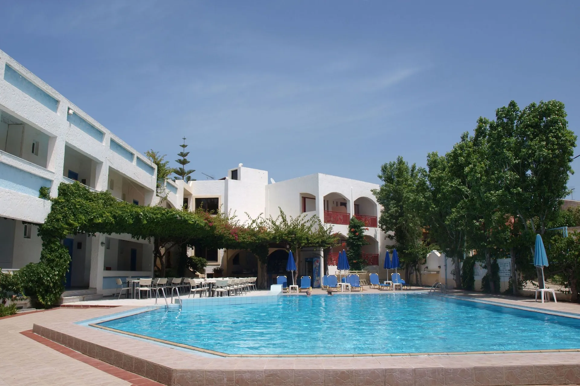 Het appartementenhotel bevindt zich op ongeveer 500 m van het zandstrand, direct in het centrum van Plataniás, in een bruisende buurt met shopping- en recreatiemogelijkheden.