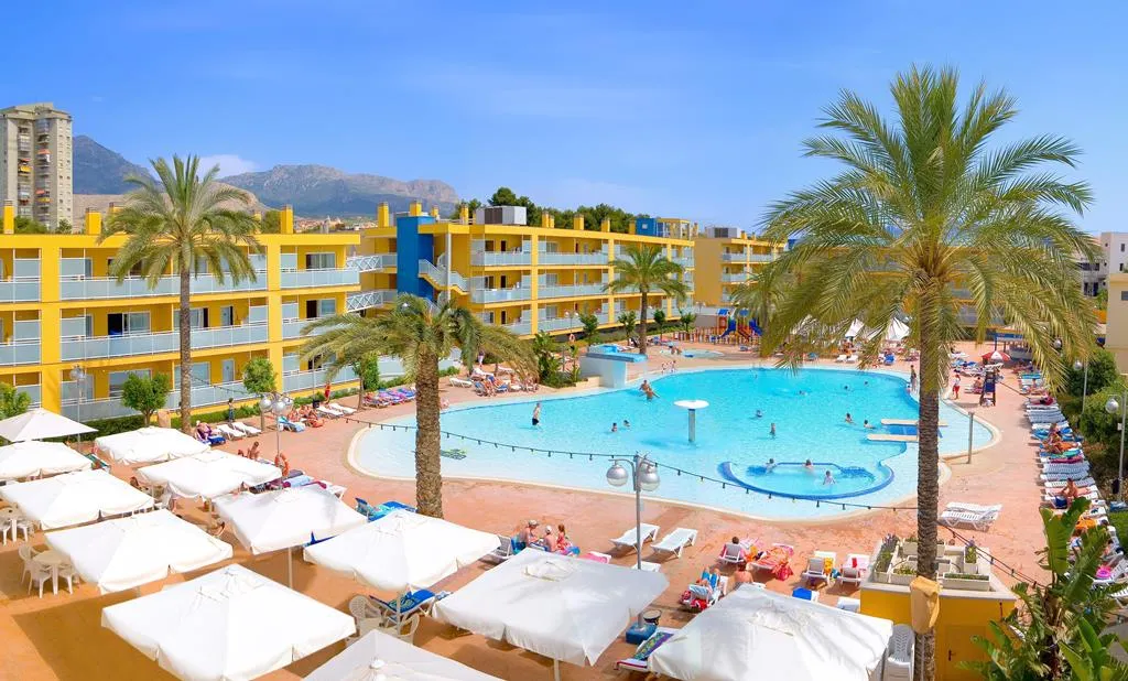 Het kleurrijke appartementencomplex Terralta is uniek in Benidorm met haar laagbouw.