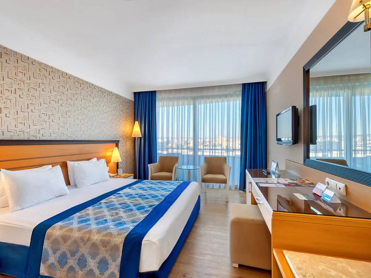 U kunt genieten van een massage in het grote wellnesscentrum of ontspannen met een koel drankje op het balkon van uw gezellige kamer..