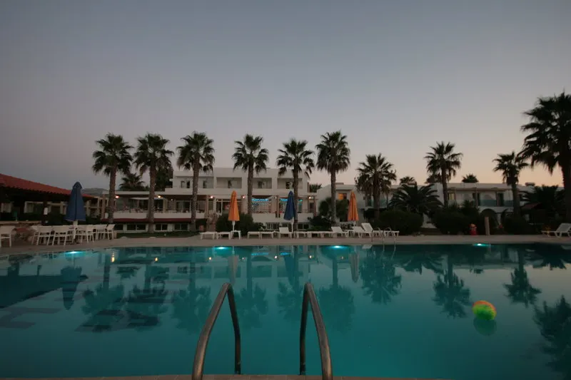 Dit hotel ligt direct aan het strand, centraal in Tigaki..