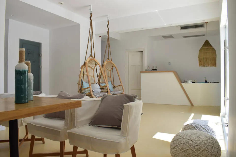Dit volledig gerenoveerde hotel maakt deel uit van de prestigieuze Manthos Hotels collectie en combineert moderne elegantie met authentieke boho-stijl decoratie, waardoor een unieke en inspirerende sfeer ontstaat. Het hotel ligt op een toplocatie, op slechts 5 minuten lopen van het oude stadscentrum en biedt een spectaculair uitzicht over de turquoise wateren van de Egeïsche Zee.