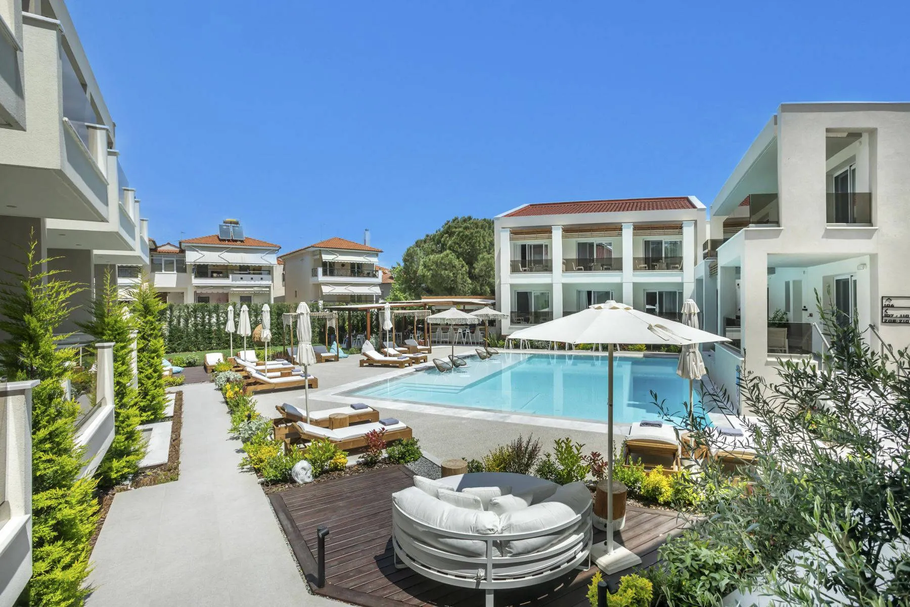 Zowel het strand als het centrum van Pefkohori liggen op loopafstand. Kom helemaal tot rust met een drankje aan het zwembad of boek een heerlijke massage.