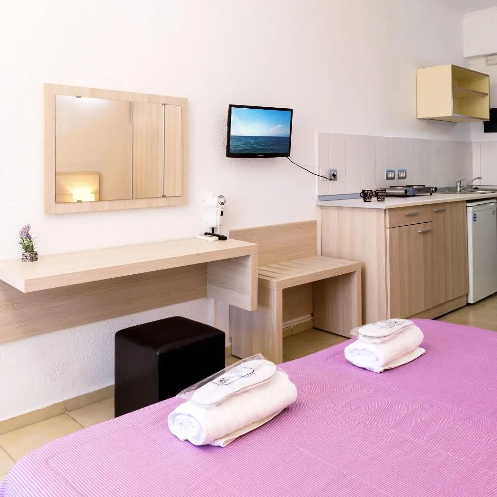 Dit hotel ligt op ongeveer 300 m van het strand, centraal in Trianda (= Ialyssos)..