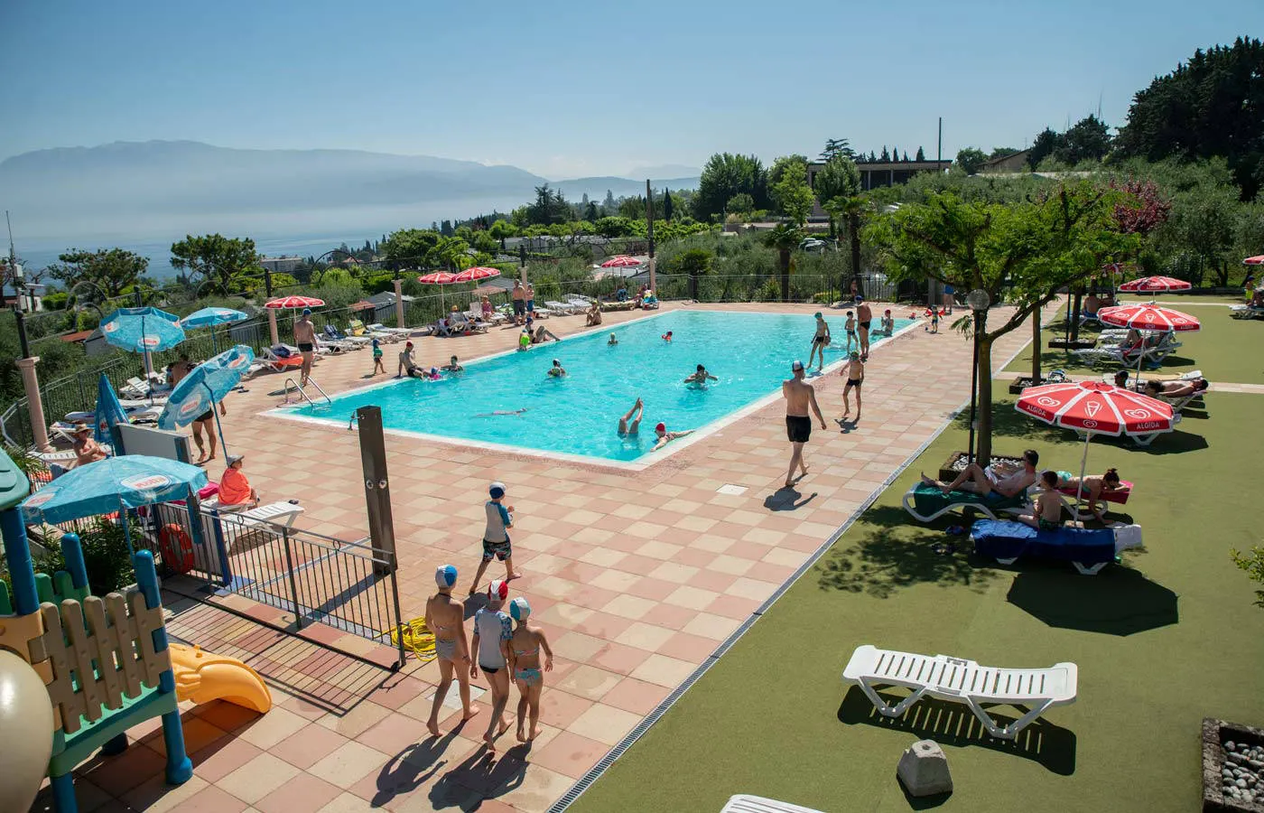 Deze terrassencamping ligt aan de westkant van het Gardameer. Zowel op het bovenste als het beneden deel van is een zwembad, daarbij zijn de stacaravans bijna allemaal met de auto bereikbaar waardoor de hoogteverschillen nooit echt een probleem hoeven te zijn.
