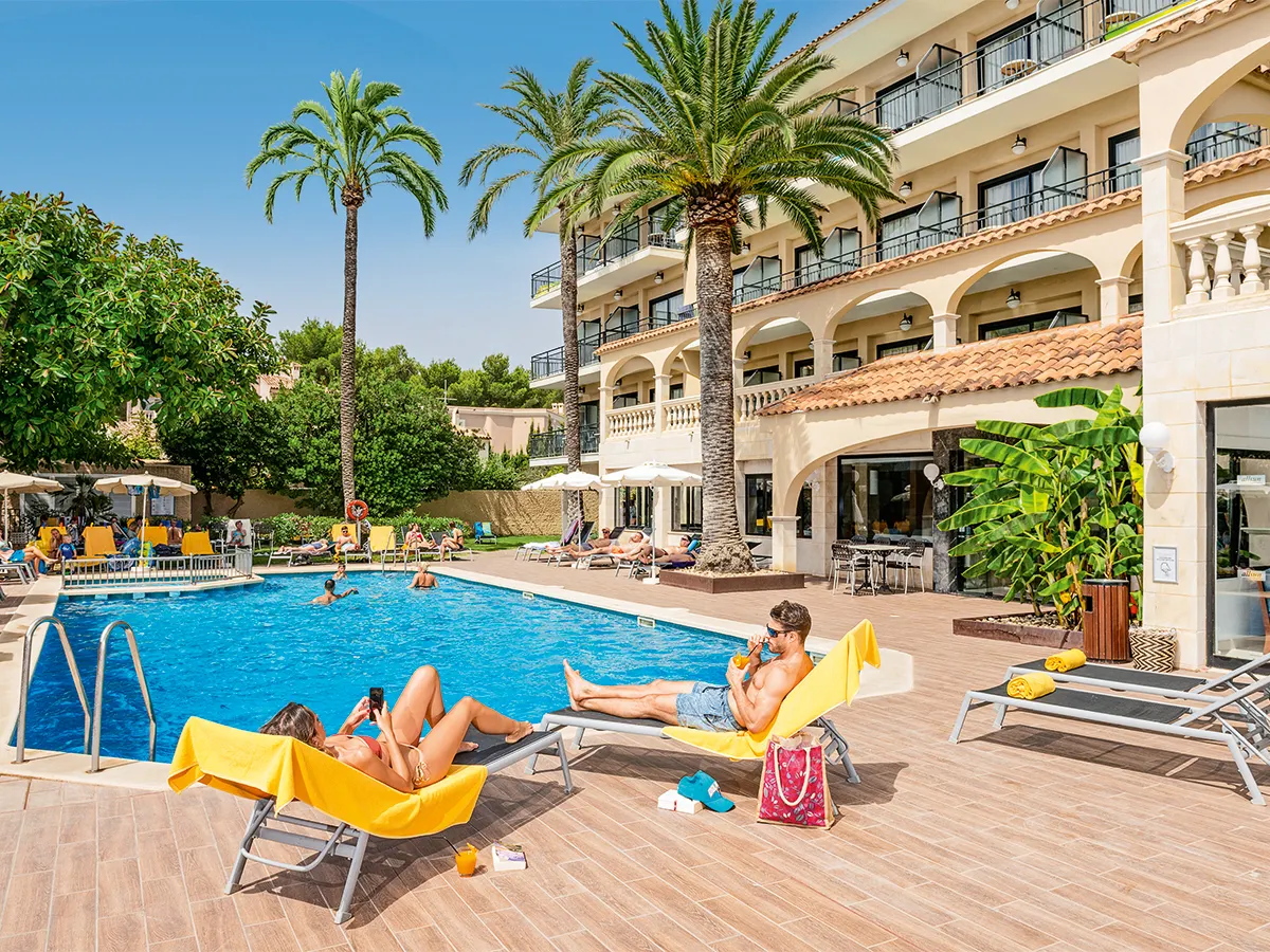 Dit vakantiecomplex in Mallorcaanse stijl ligt direct aan de prachtige Cala Son Moll en biedt uitgebreide zwembadlandschappen en de beste omstandigheden voor gezinnen en sportliefhebbers.