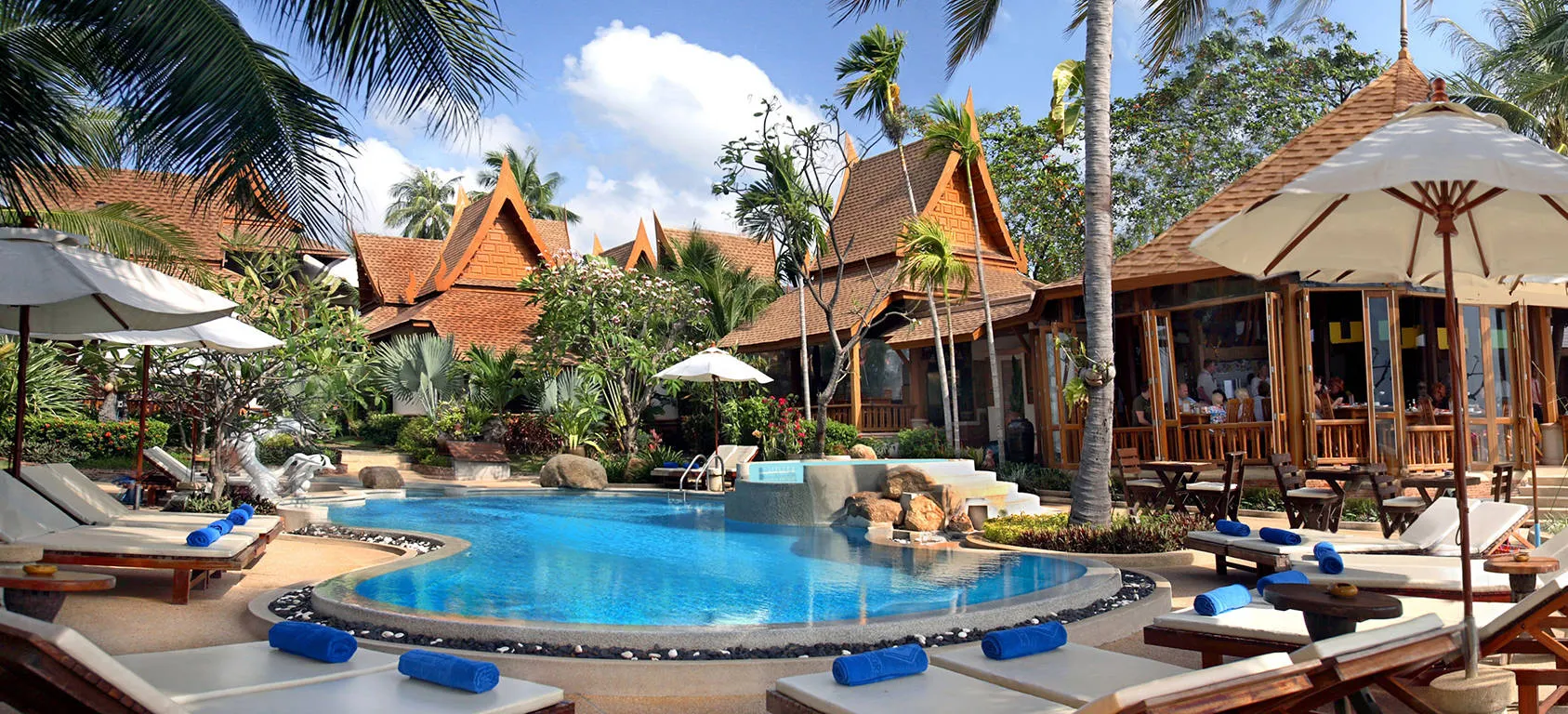 Welkom in dit gemoedelijke en in Thaise stijl gebouwde resort! Direct gelegen aan het brede witte zandstrand van Lamai Beach voelt deze plek als een paradijs op aarde! Het Thai House Beach Resort heeft een heerlijk zwembad met jacuzzi en een peuterbadje zodat ook de jongsten kunnen genieten van een frisse duik.
