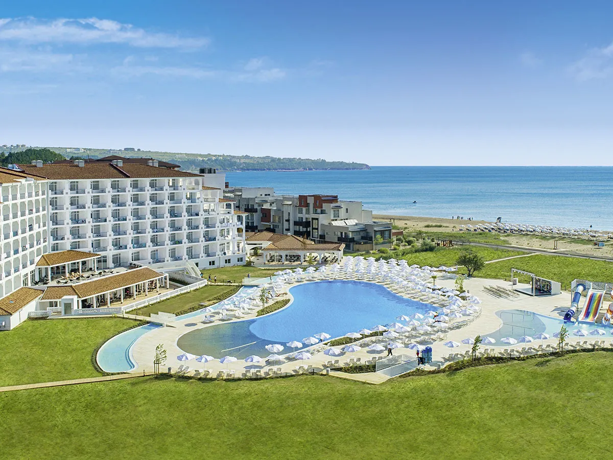 Overdag kun je ontspannen onder de Bulgaarse zon bij het zwembad en tot rust komen. Wandel daarna langs het glooiende zandstrand en sluit de avond bij zonsondergang comfortabel af met een glas wijn in een van de bars..