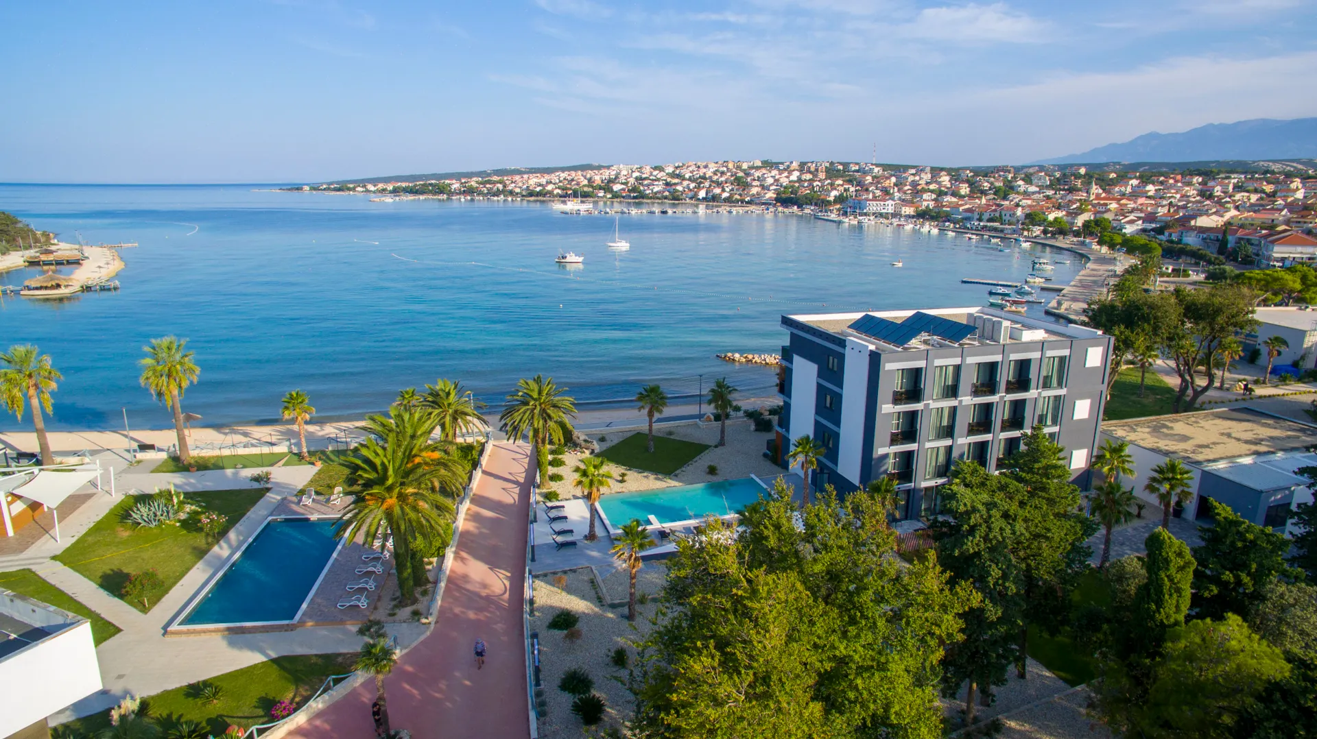 Het hotel ligt midden in het centrum van Novalja..