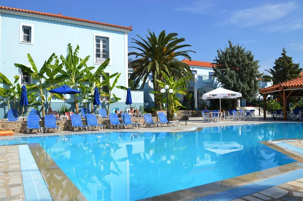 Je hoort vanuit je kamer de klokken van het dorpskerkje luiden. Een smal paadje vanaf de kustweg leidt je naar deze blauweén zonnig plek. Strijk bij het zwembad neer op je ligbed en pak er een dik boek bij. Je hebt namelijk tijd zat.