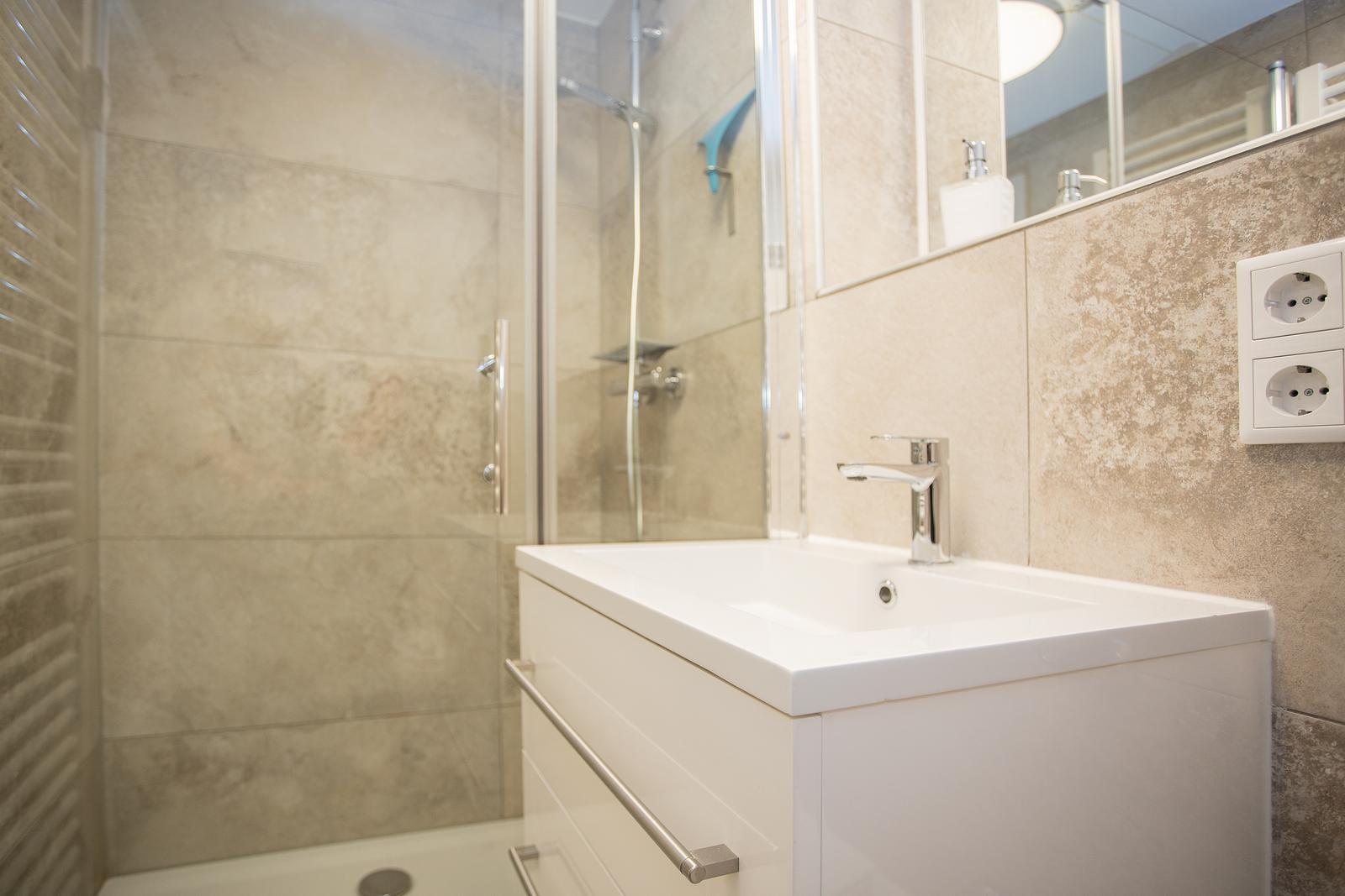 Verder zijn er 2 nachtkastjes, bedlampjes en een kledingkast aanwezig. De tweede slaapgelegenheid bevindt zich in de woonkamer, door middel van de slaapbank, en is geschikt voor 2 kinderen. De badkamer is voorzien van een inloop/regendouche, toilet en een wastafelmeubel, handdoeken kan je drogen op de handdoekradiator. Vanuit het zitje (tafel met 2 stoelen) op het balkon geniet je van het uitzicht over de bergen van Sauerland. Hier kan je heerlijk wandelen met je trouwe viervoeter want in deze accommodatie is één huisdier toegestaan, dus hij/zij kan gezellig mee op vakantie.
