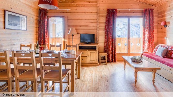 De gezellige accommodatie ligt in Valmeinier 1800 in de directe nabijheid van de piste, zodat je op ongeveer 50 meter van je appartement/chalet naar beneden kunt skiën. Vanaf hier kun je genieten van een prachtig panoramisch uitzicht op de omliggende bergen. Het dorpscentrum met gezellige zonneterrassen, cafés, restaurants en supermarkten ligt op slechts 500 m afstand en de skibus stopt voor de accommodatie.