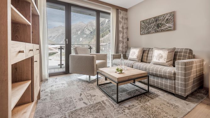 100 m van het centrum van Sölden. De toegang tot het skigebied is via de op ongeveer 300 m verder gelegen lift "Gaislachkogelbahn" mogelijk. Het loipennetwerk op ongeveer 150 m afstand biedt langlaufmogelijkheden. Skibussen stoppen direct voor de accommodatie.InrichtingHet luxueuze verblijf bestaat uit een hoofd- en een bijgebouw, die met elkaar verbonden zijn.